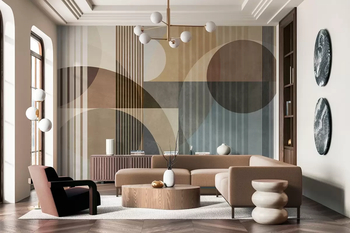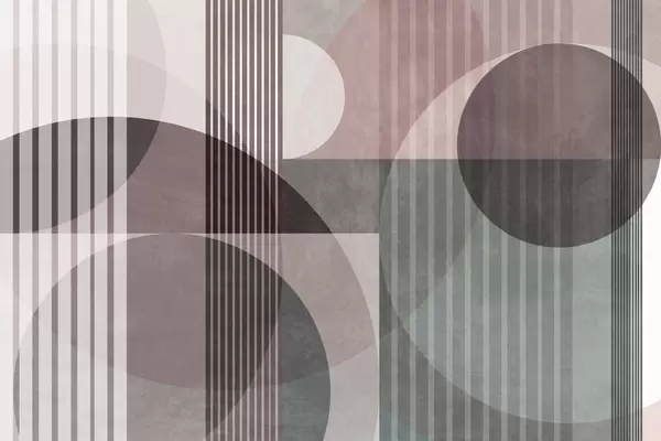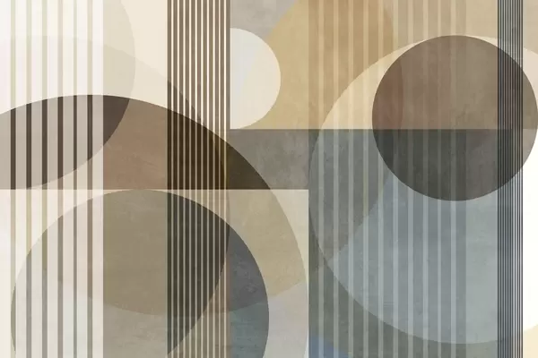 Fotobehang Abstracte geometrische vormen met cirkels en lijnen, ingetogen aardetinten, een compositie met textuur en gelaagdheid N° w09834