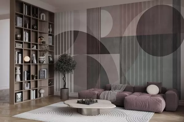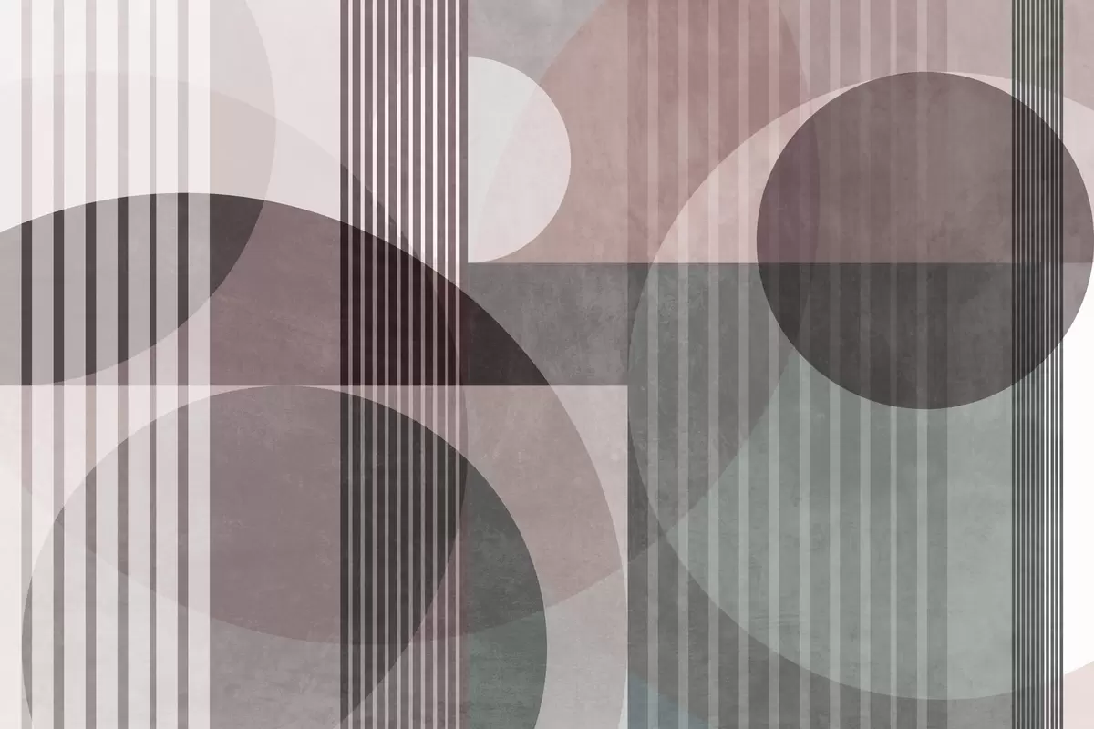 Fotobehang Abstracte geometrische vormen met cirkels en lijnen, ingetogen tinten, een compositie met textuur en gelaagdheid N° w09834v1