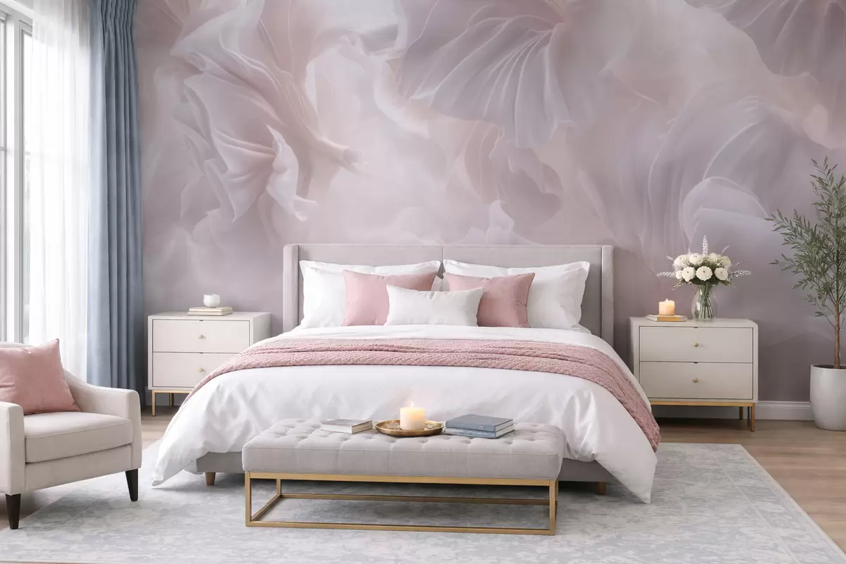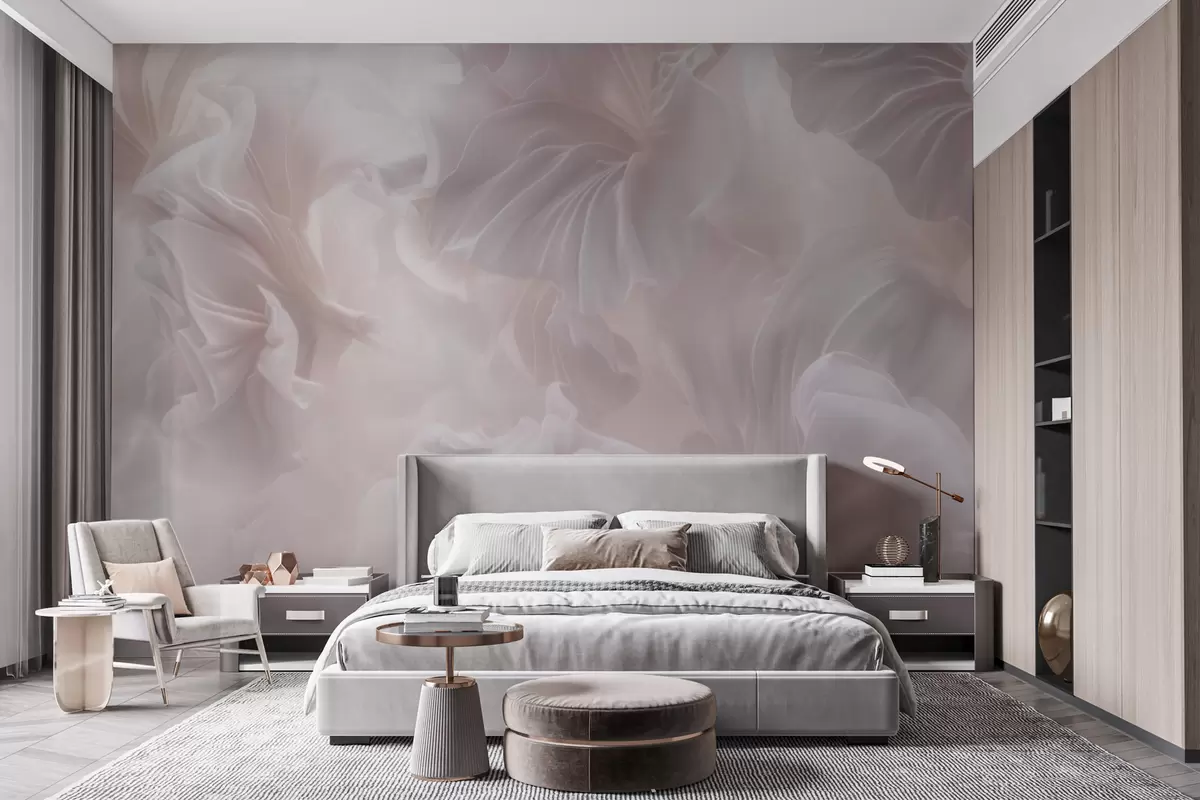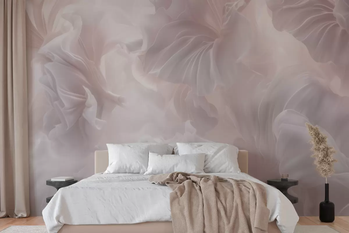 Fotobehang Abstracte bloemmotieven met golvende bloemblaadjes in pasteltinten N° w09841