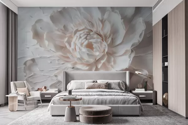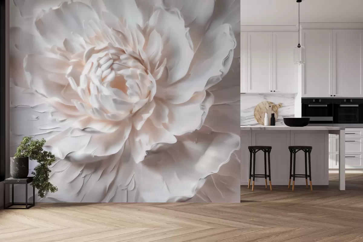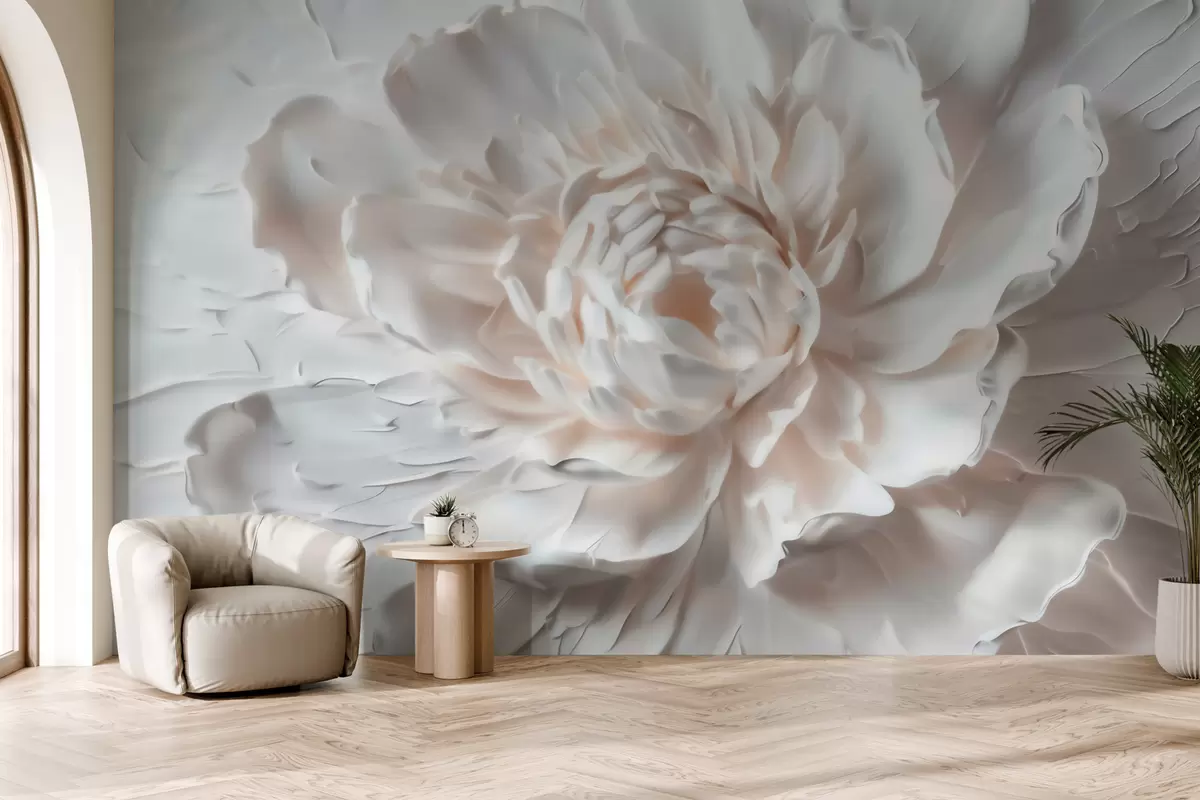 Fotobehang Een sierlijk bloemenreliëf met gladde bloemblaadjes in lichte tinten N° w09861