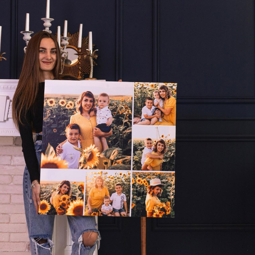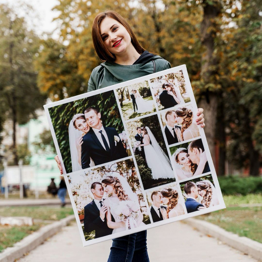 Kies een canvas of poster die past bij het ontwerp en het interieur van je fotocollage.