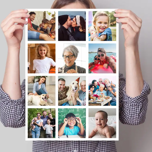 Een fotocollage op canvas is een bijzonder cadeau dat je persoonlijke herinneringen en foto's combineert tot één geheel. Kies je favoriete foto's uit je fotoarchief en combineer ze tot een collage.