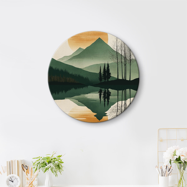 Tableaux ronds Imitation de peinture représentant un paysage rural