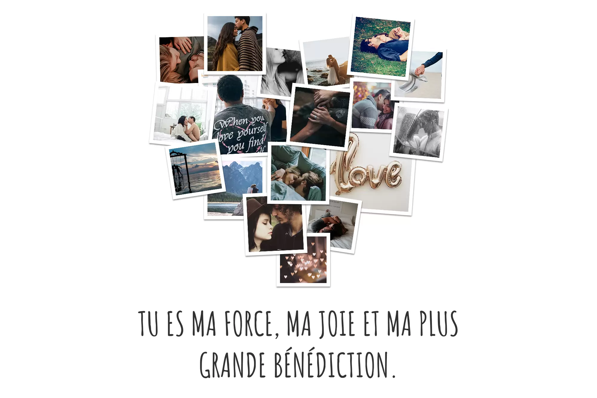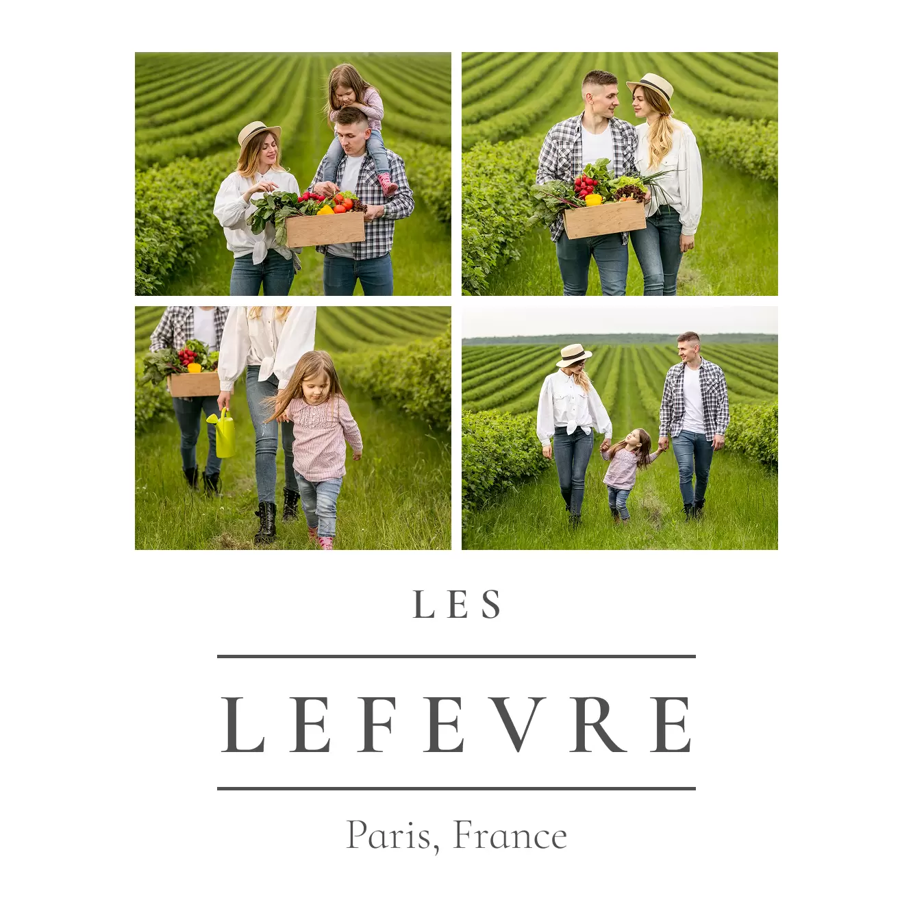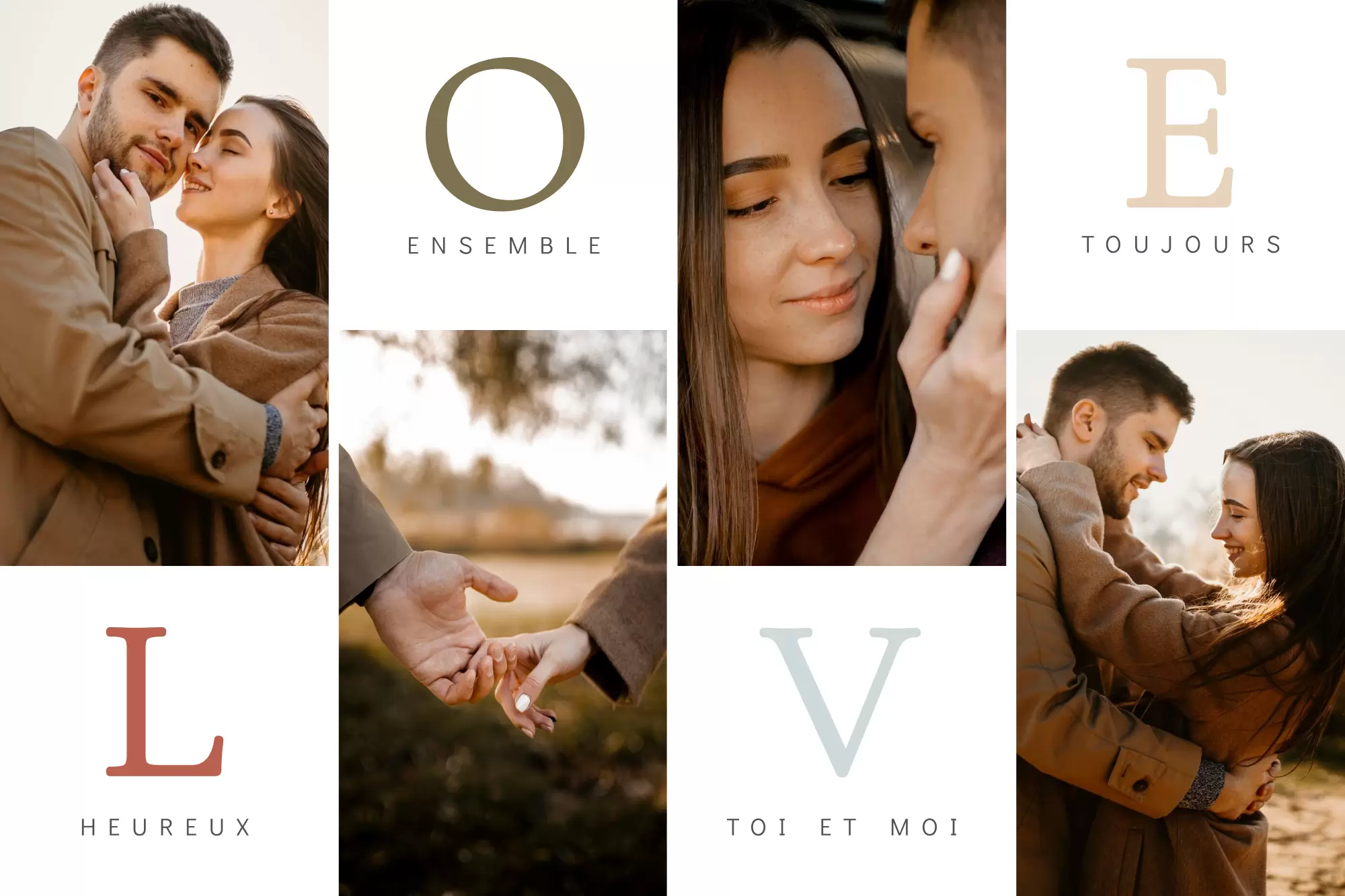 Nous créons un collage facilement et rapidement grâce à des modèles prêts à l'emploi. Un cadeau unique pour toute célébration avec un design personnalisé pour votre collage de photos.