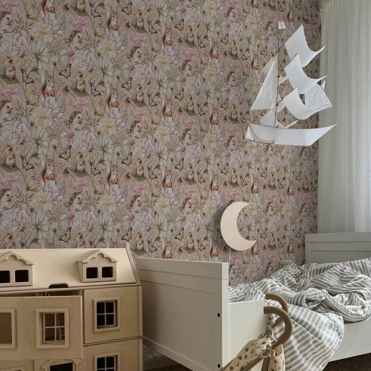 Fonds d'écran Hérisson, écureuil, hamster et papillons mignons avec des fleurs aux couleurs pastel Nr. a00051