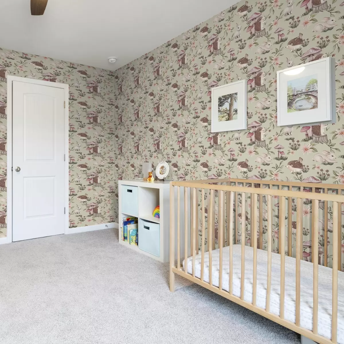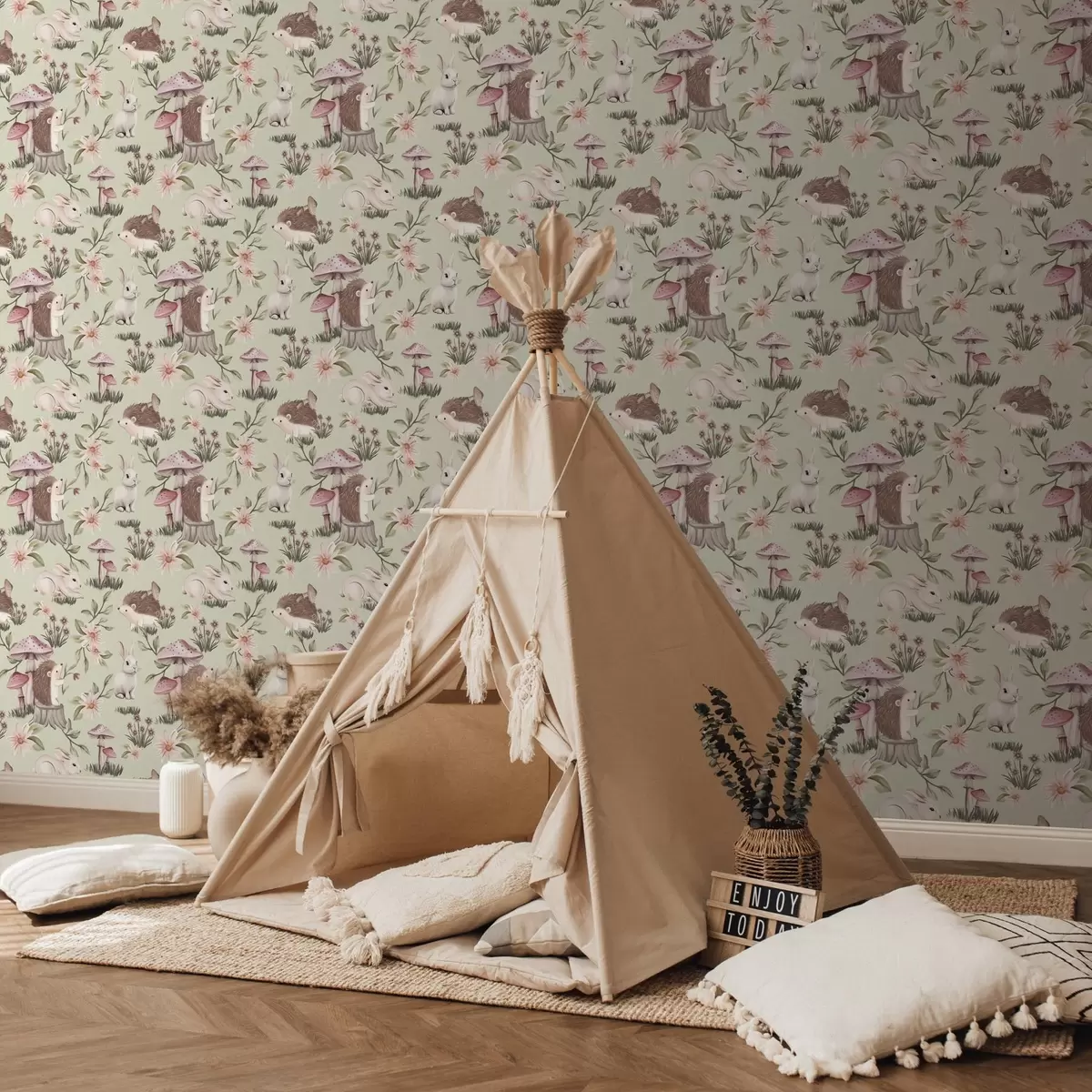 Fonds d'écran Animaux et fleurs de contes de fées sur un fond vert aux délicates couleurs pastel Nr. a00111v1