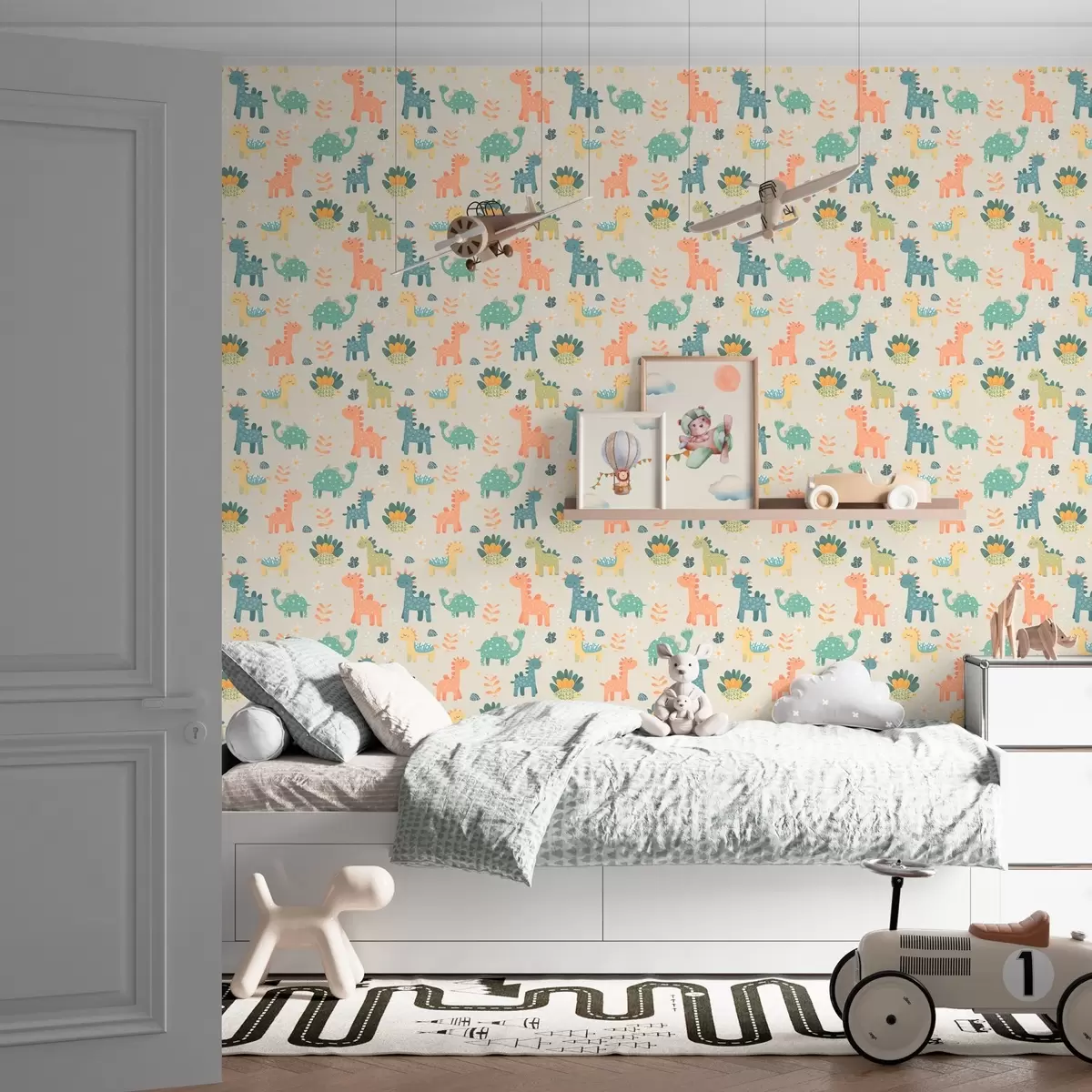 Fonds d'écran Dinosaures pour enfants en couleurs pastel sur fond clair Nr. a00125