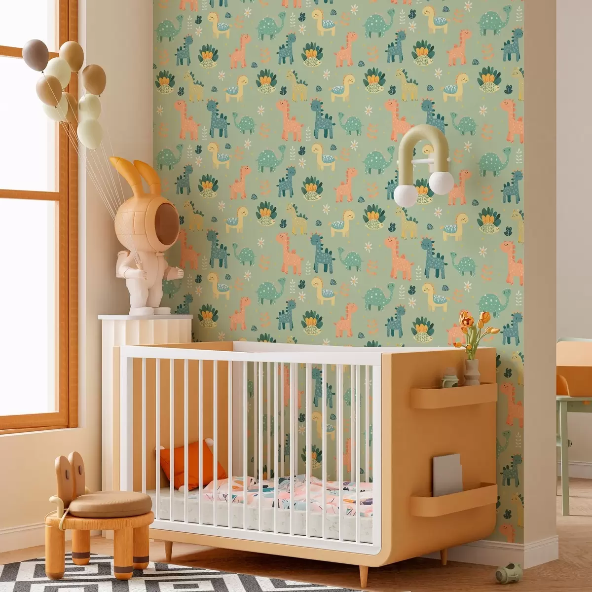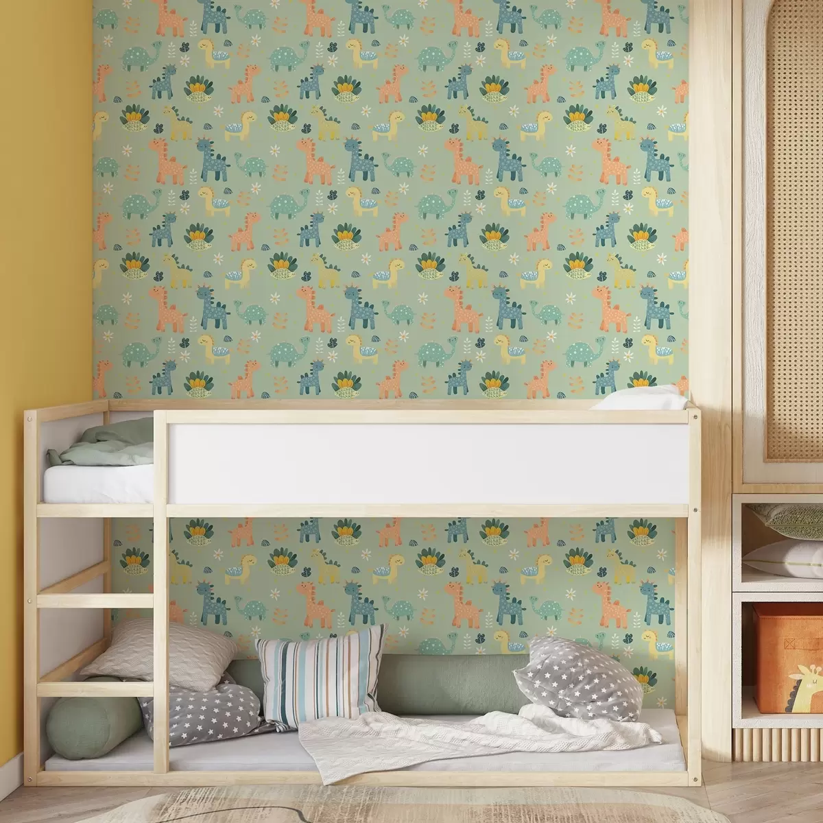 Fonds d'écran Drôles de dinosaures dans une palette de vert tendre sur un fond clair Nr. a00125v1