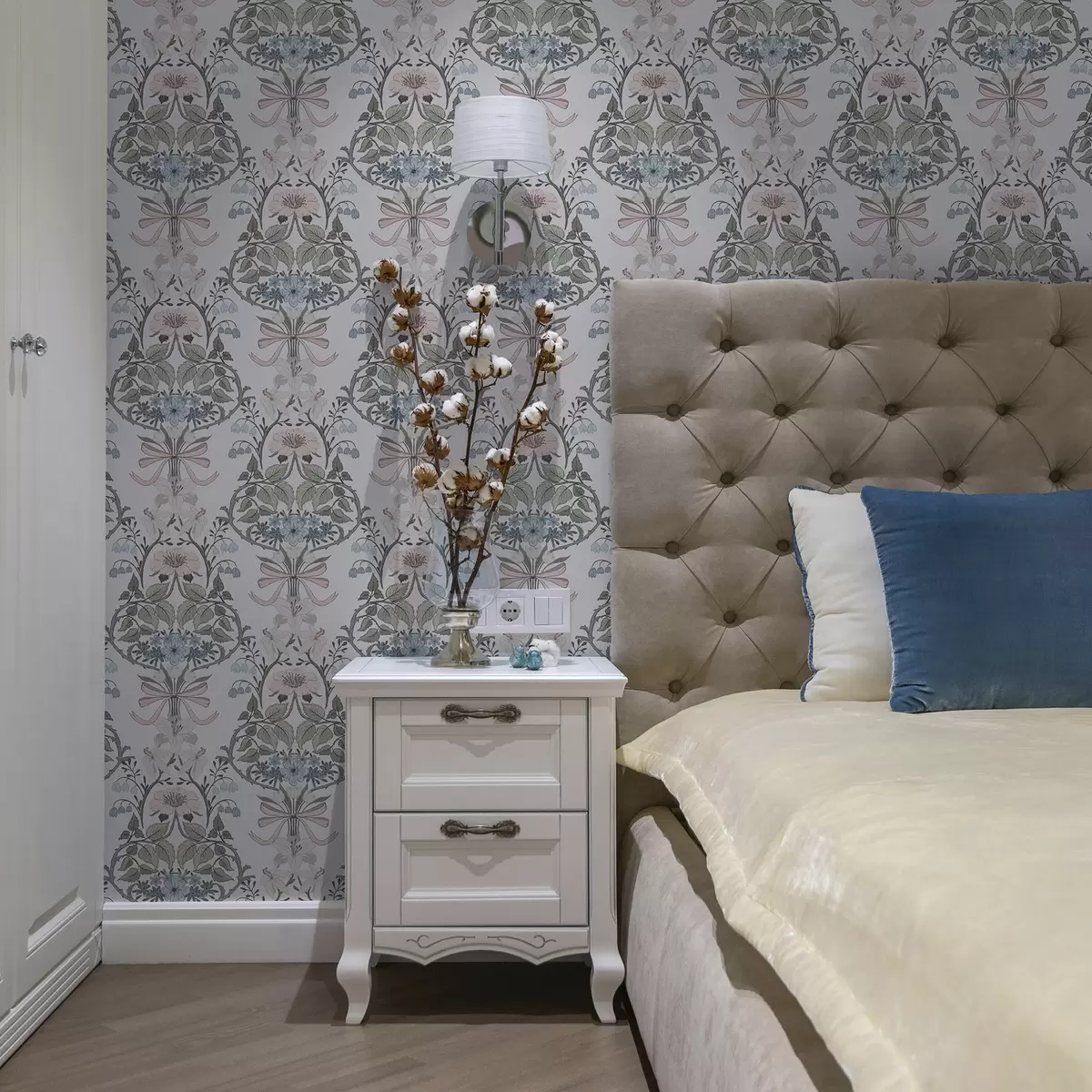 Fonds d'écran Motif floral rétro avec nœuds et bourgeons Nr. a00174