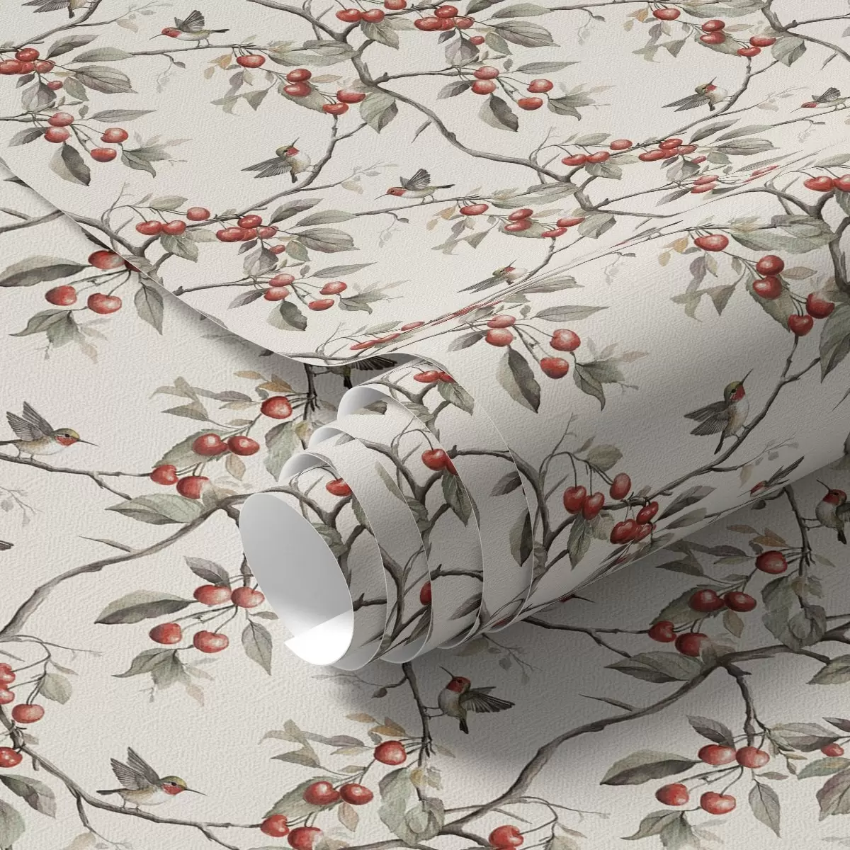 Fonds d'écran Oiseaux parmi des branches de cerisier avec des baies rouges Nr. a00206