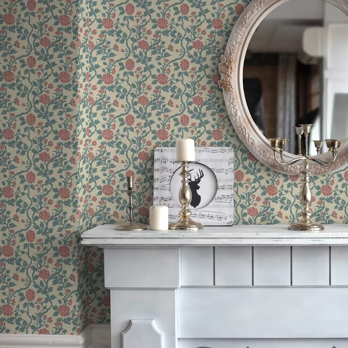 Fonds d'écran Motif rétro avec des fleurs rouges et vertes Nr. a00250