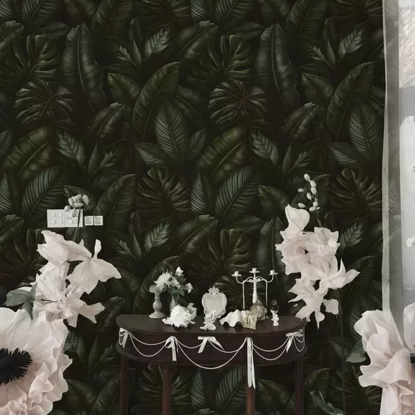 Fonds d'écran Feuilles de jungle foncées avec des tons verts profonds Nr. a00251