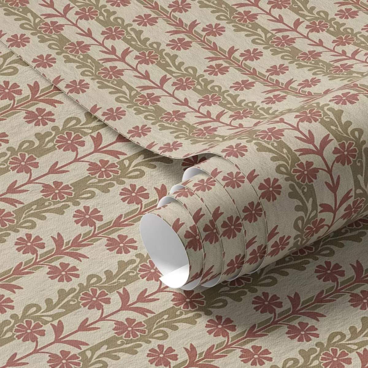 Fonds d'écran Ornement rayé avec fleurs rouges Nr. a00341