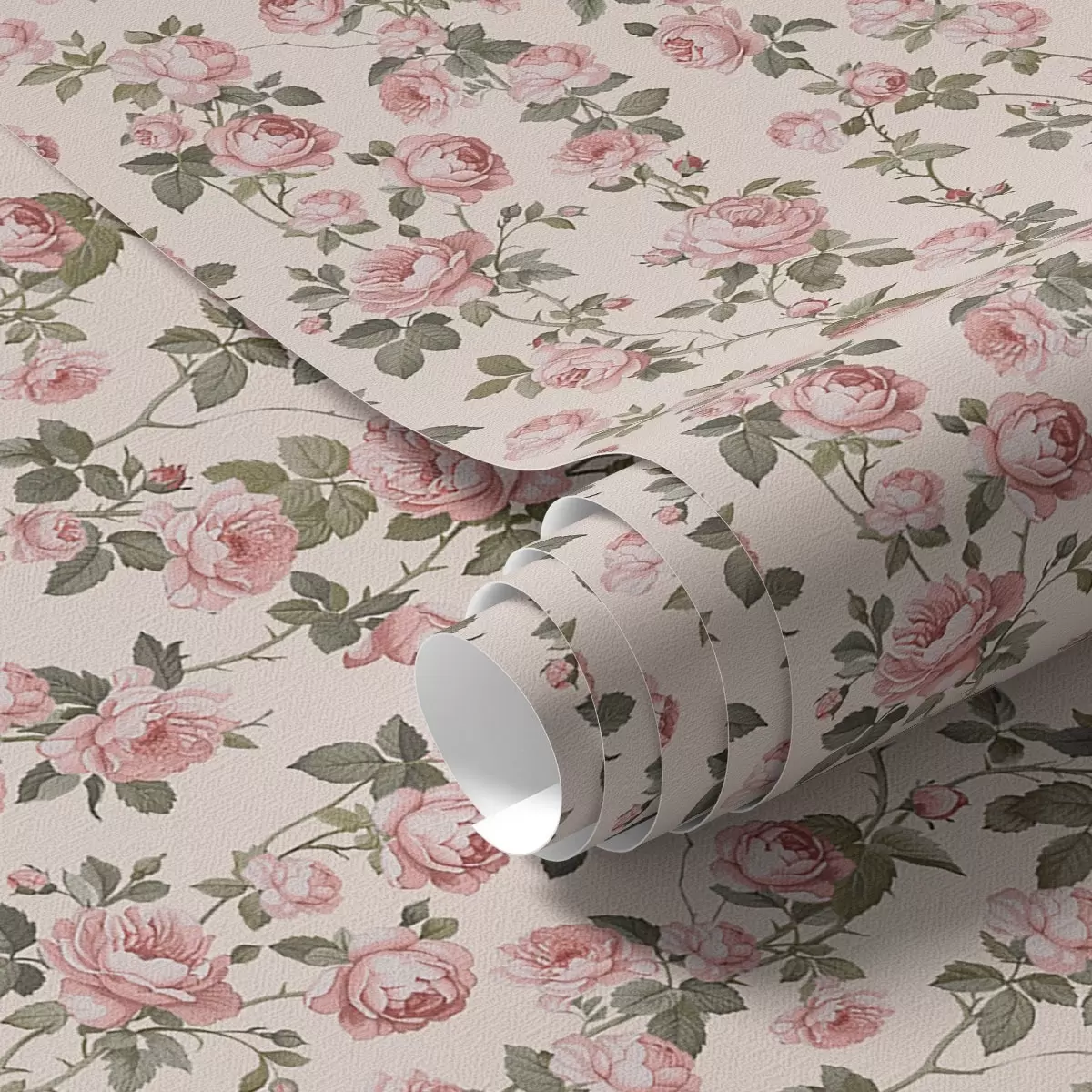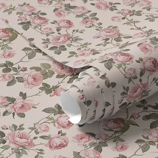 Papier peint Roses roses sur fond beige a00346
