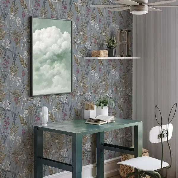 Fonds d'écran Branches florales sur fond bleu-gris Nr. a00350