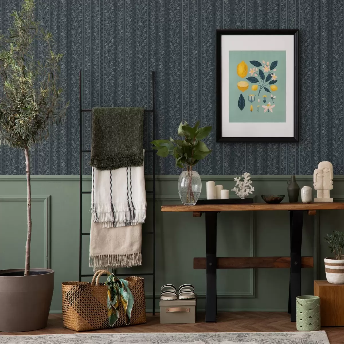 Fonds d'écran Motif rayé avec des brindilles sur fond bleu Nr. a00425