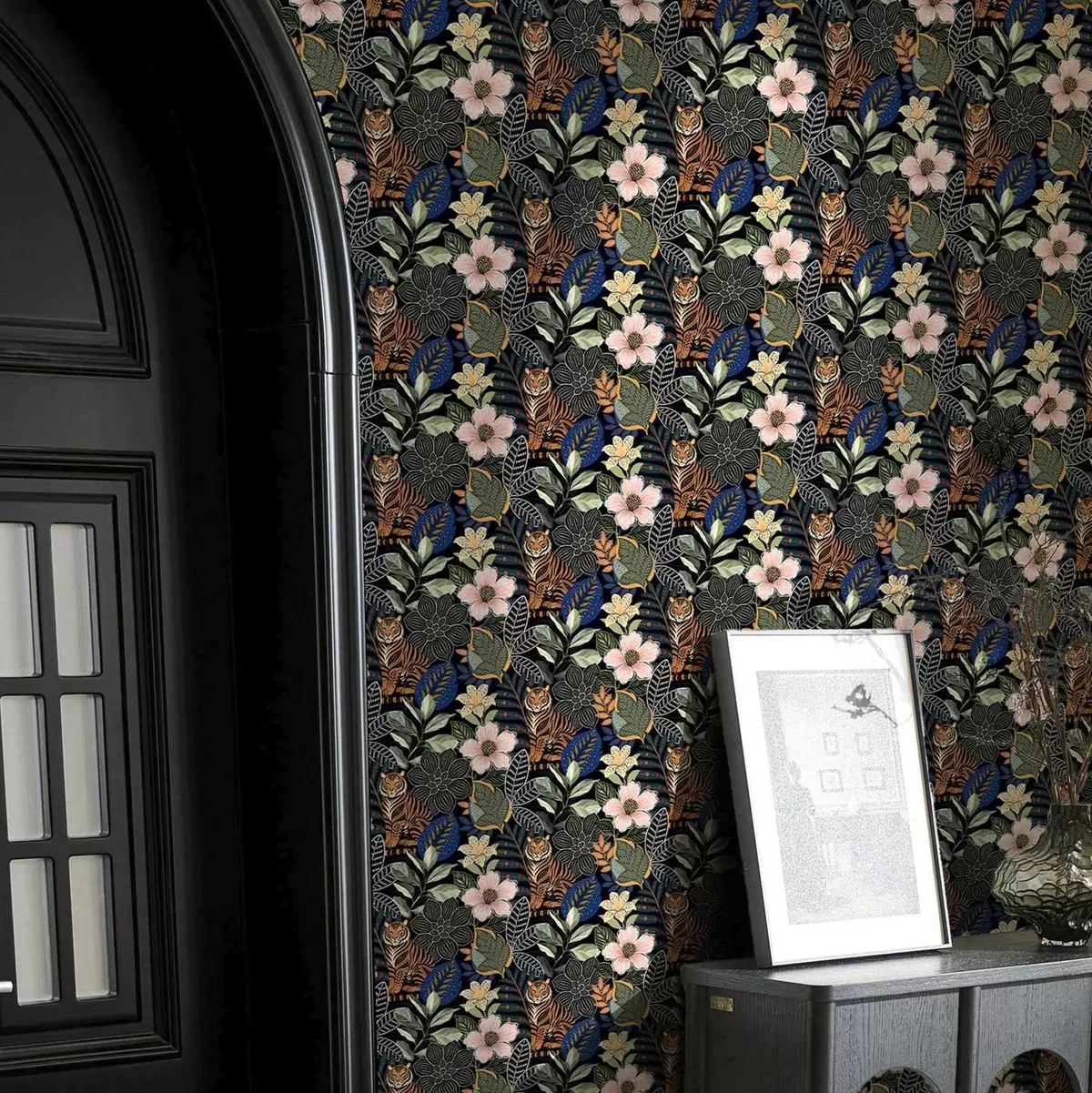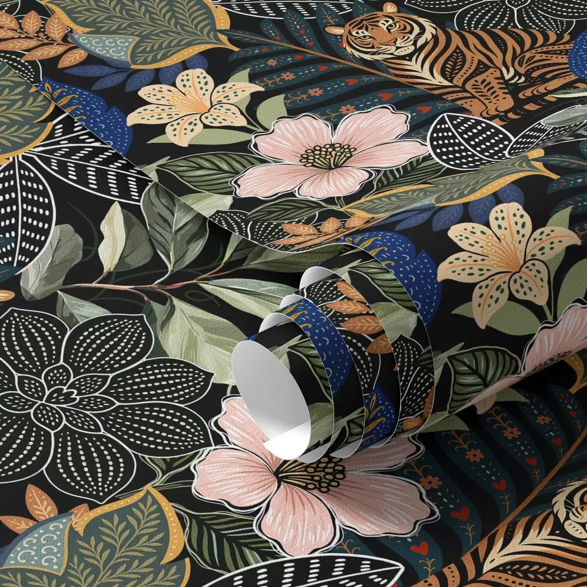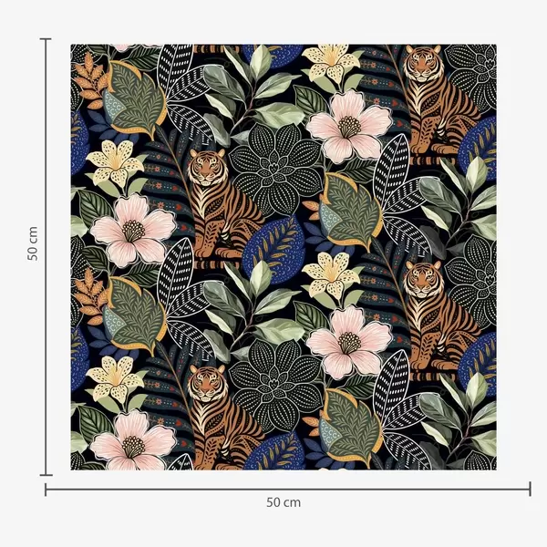 Fonds d'écran Tigres parmi des fleurs et des feuilles tropicales éclatantes Nr. a00426