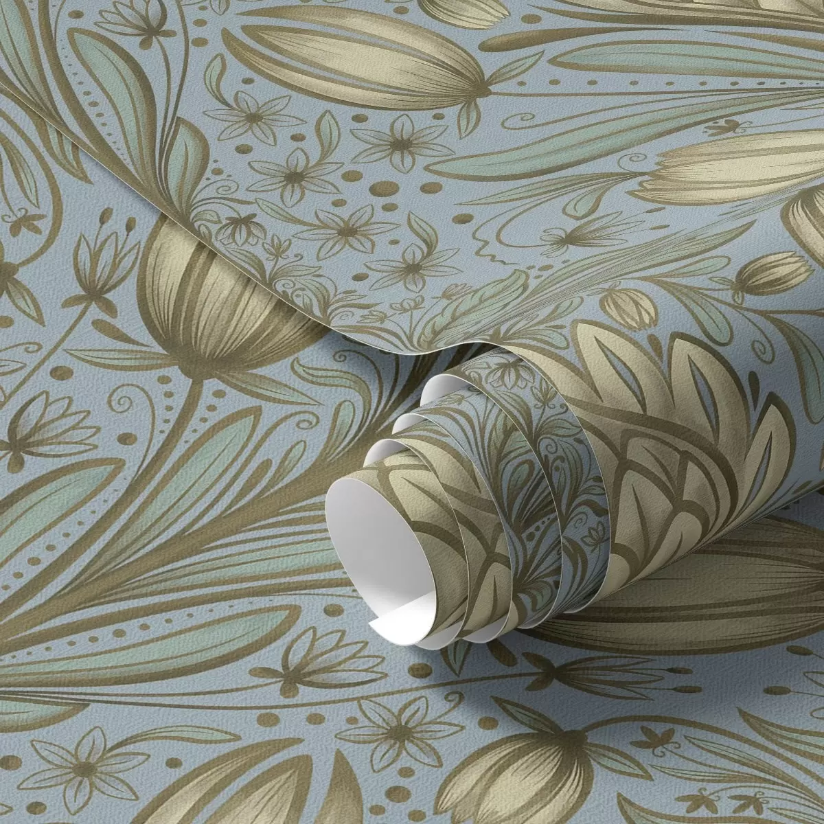 Fonds d'écran Motif bleu avec artichauts et tulipes Nr. a00435