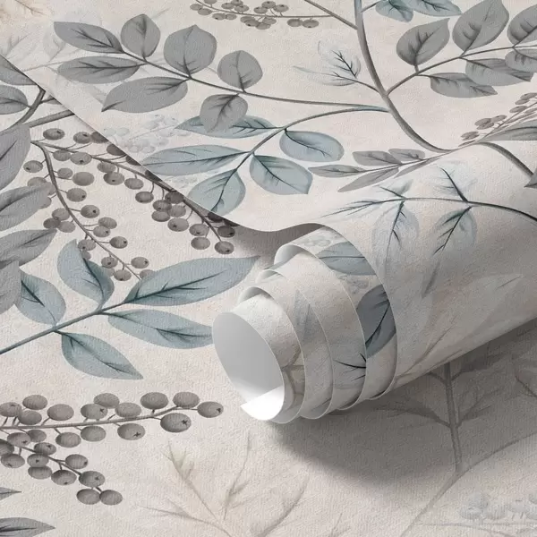 Fonds d'écran Branches de baies dans des tons pastel avec des feuilles gris-bleu Nr. a00443