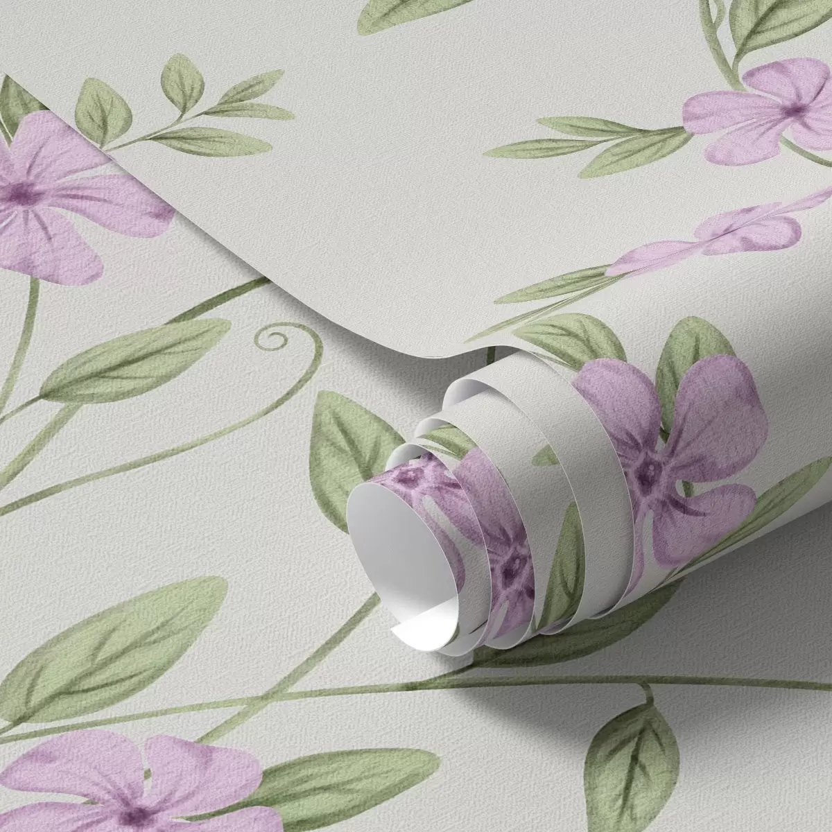Fonds d'écran Fleurs roses et lianes vertes sur fond crème Nr. a00453