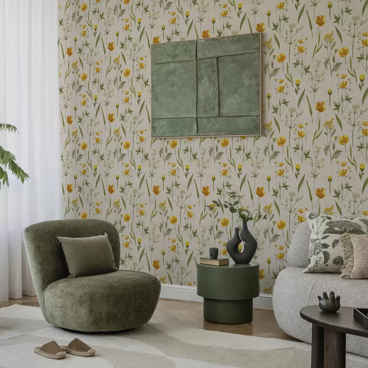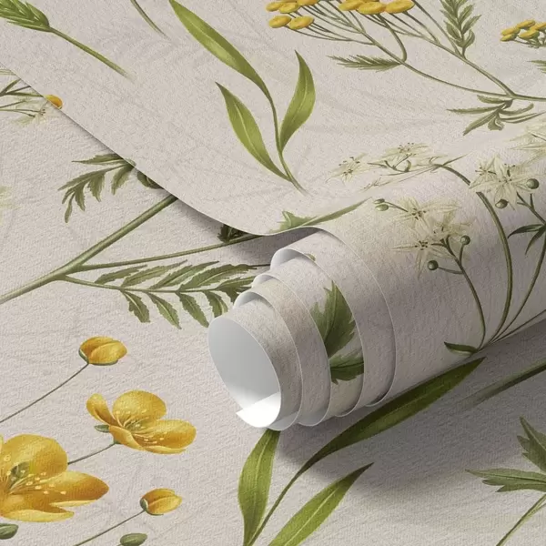 Fonds d'écran Fleurs jaunes et verdure sur fond beige Nr. a00472v2