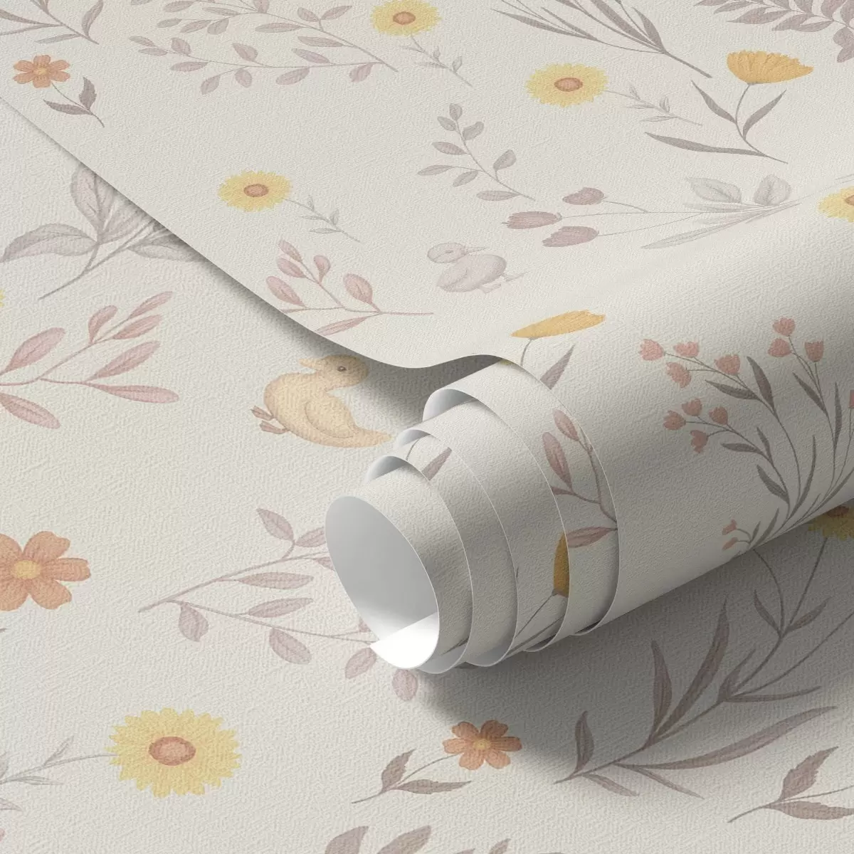 Fonds d'écran Fleurs des champs et poules dans des tons pastel doux Nr. a00478