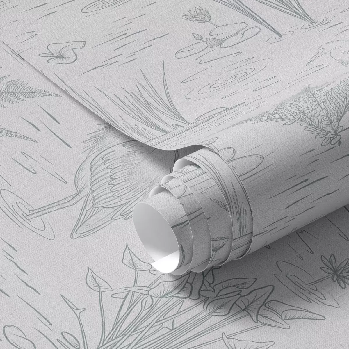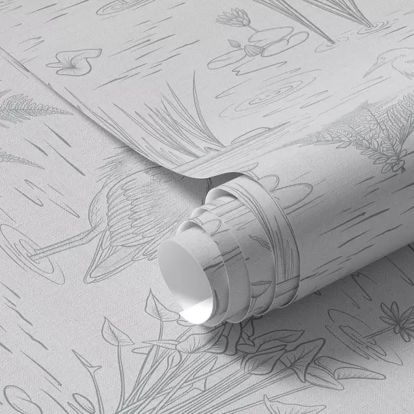 Fonds d'écran Dessin de hérons et de plantes aquatiques dans des tons gris calmes Nr. a00479