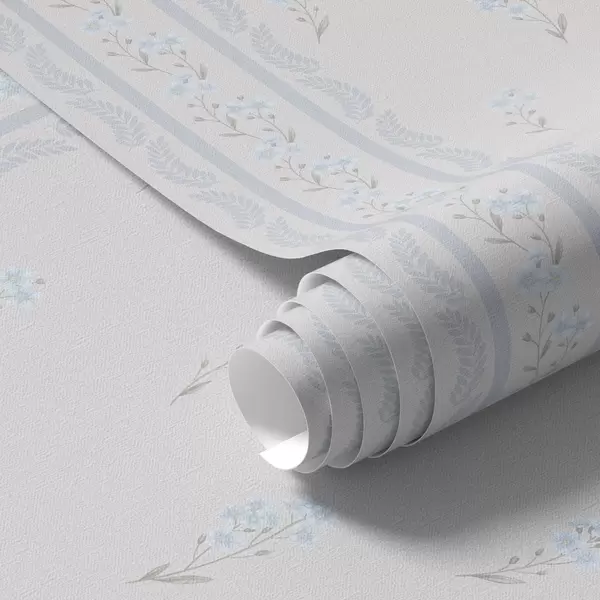 Fonds d'écran Fond blanc avec des fleurs bleues et une bande décorative Nr. a00484v1