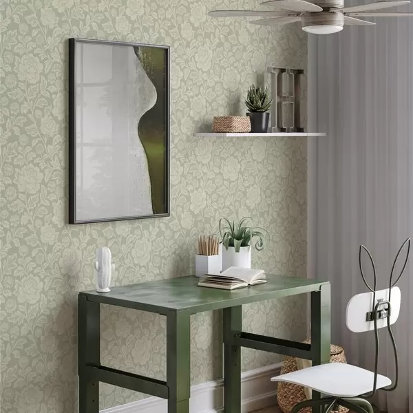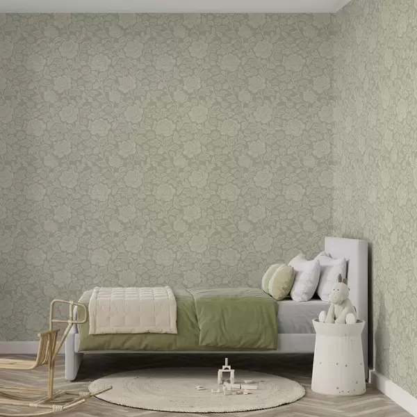 Papier peint Grandes pivoines dessinées au trait sur fond sauge a00582