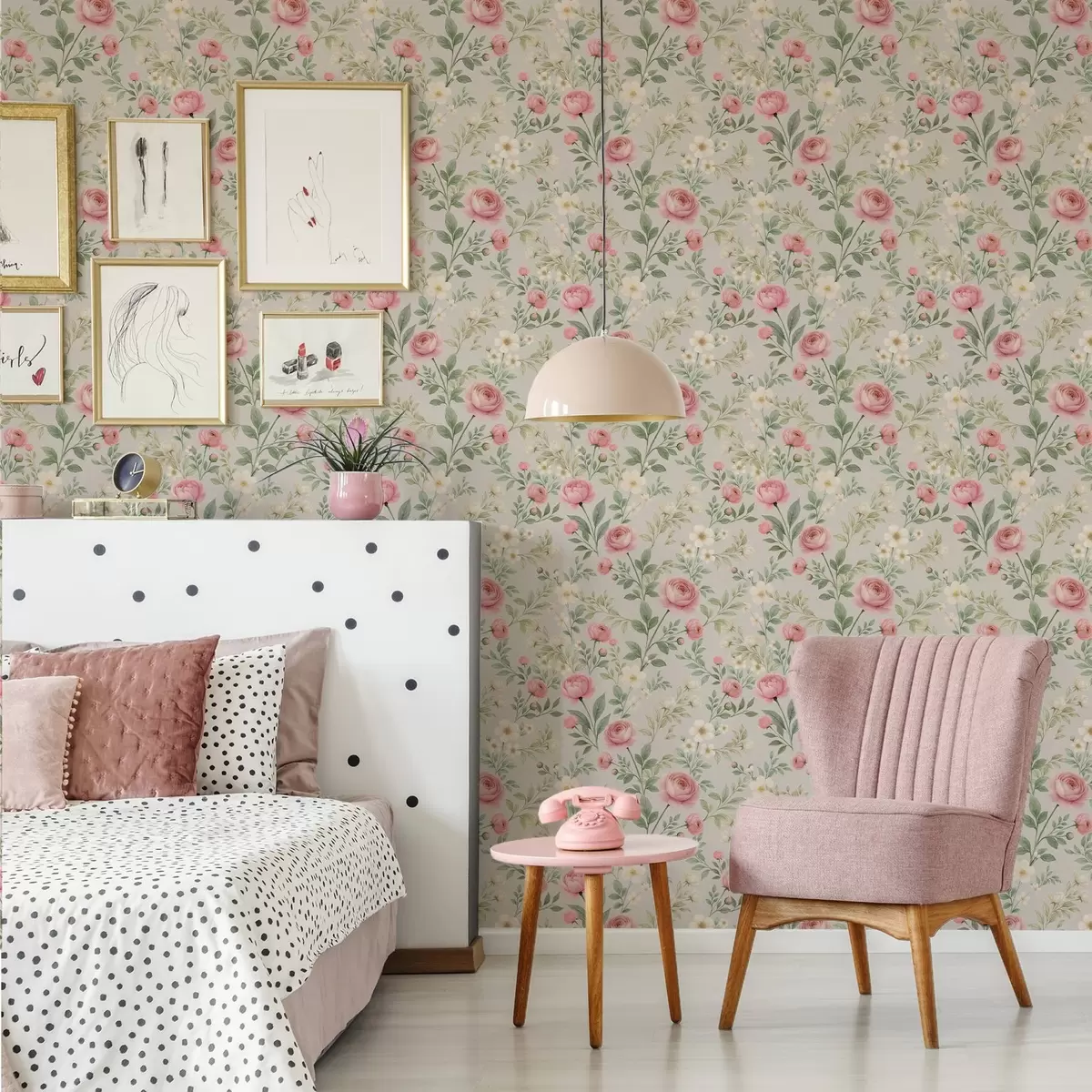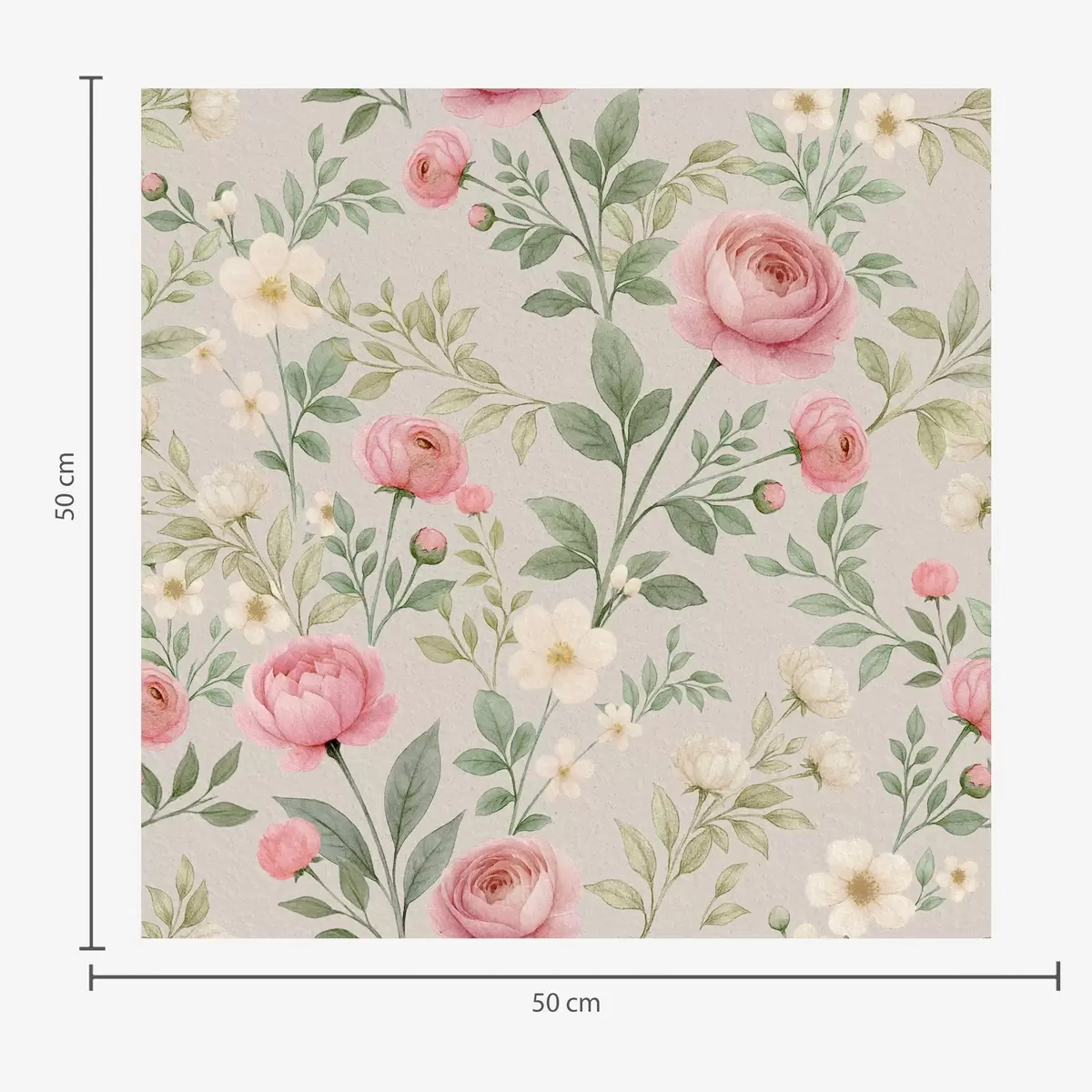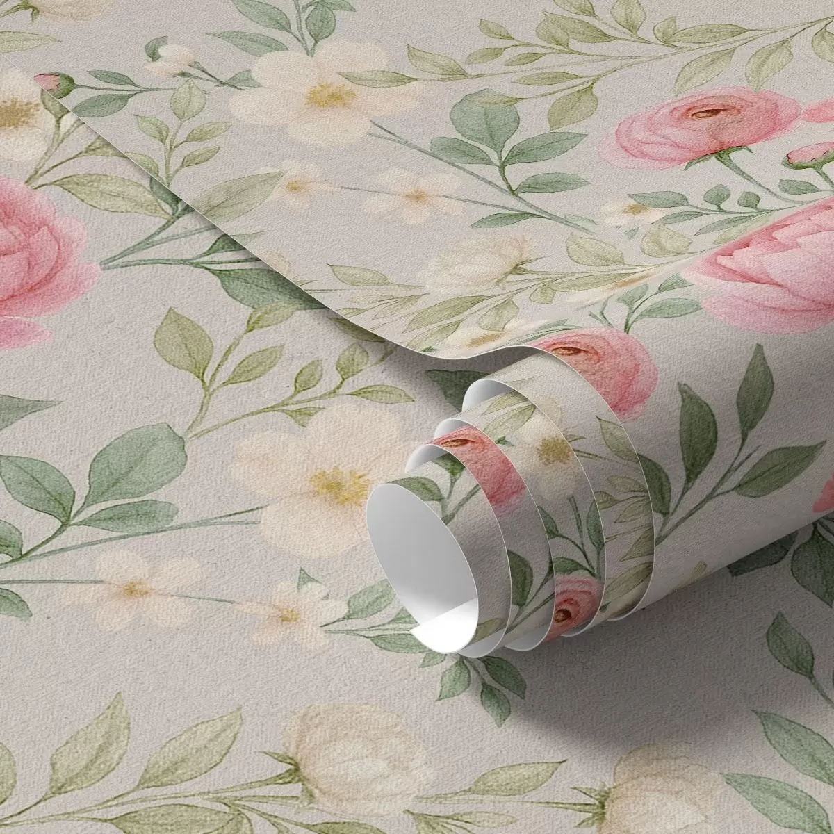 Fonds d'écran Pivoines aquarellées et fleurs blanches sur fond gris-beige Nr. a00592