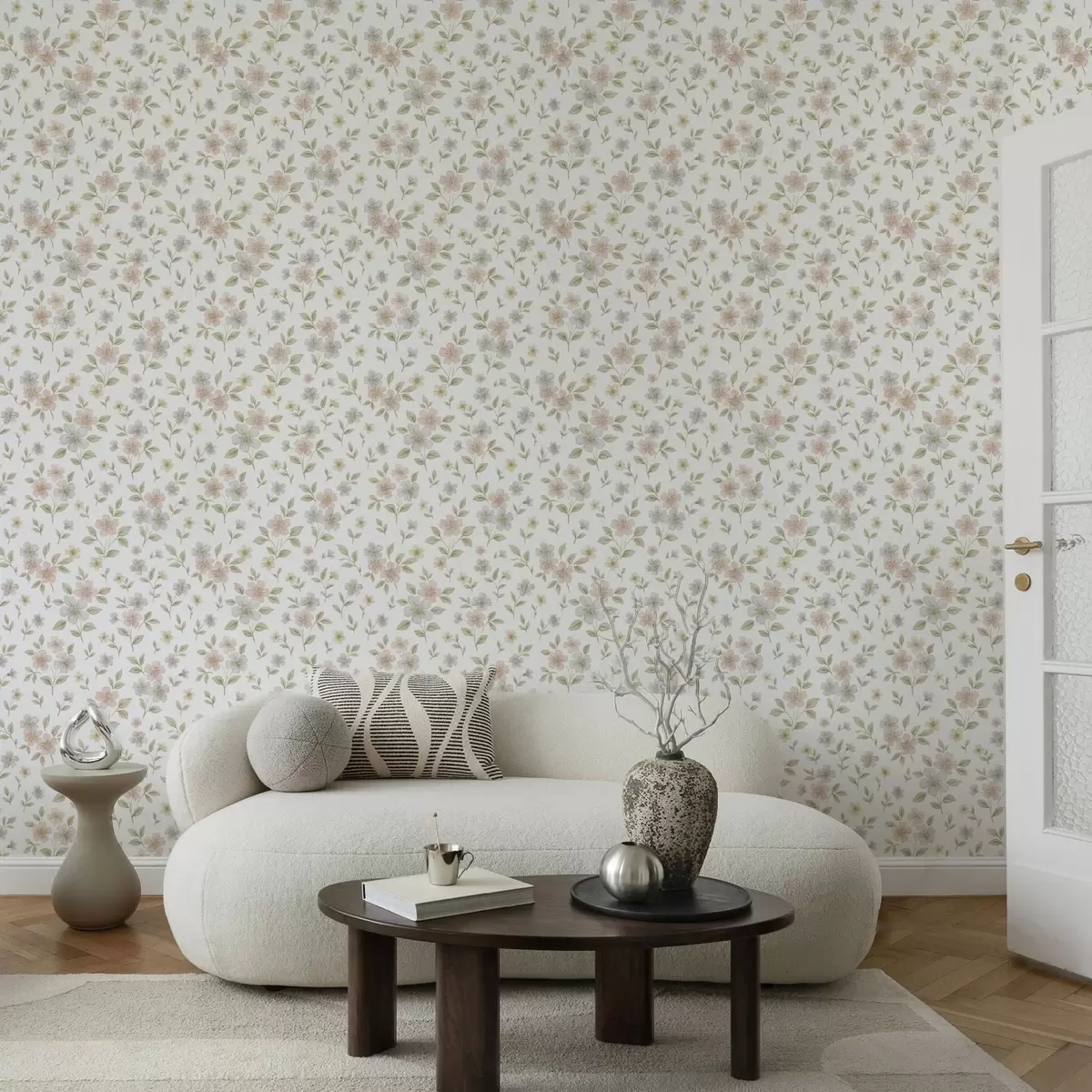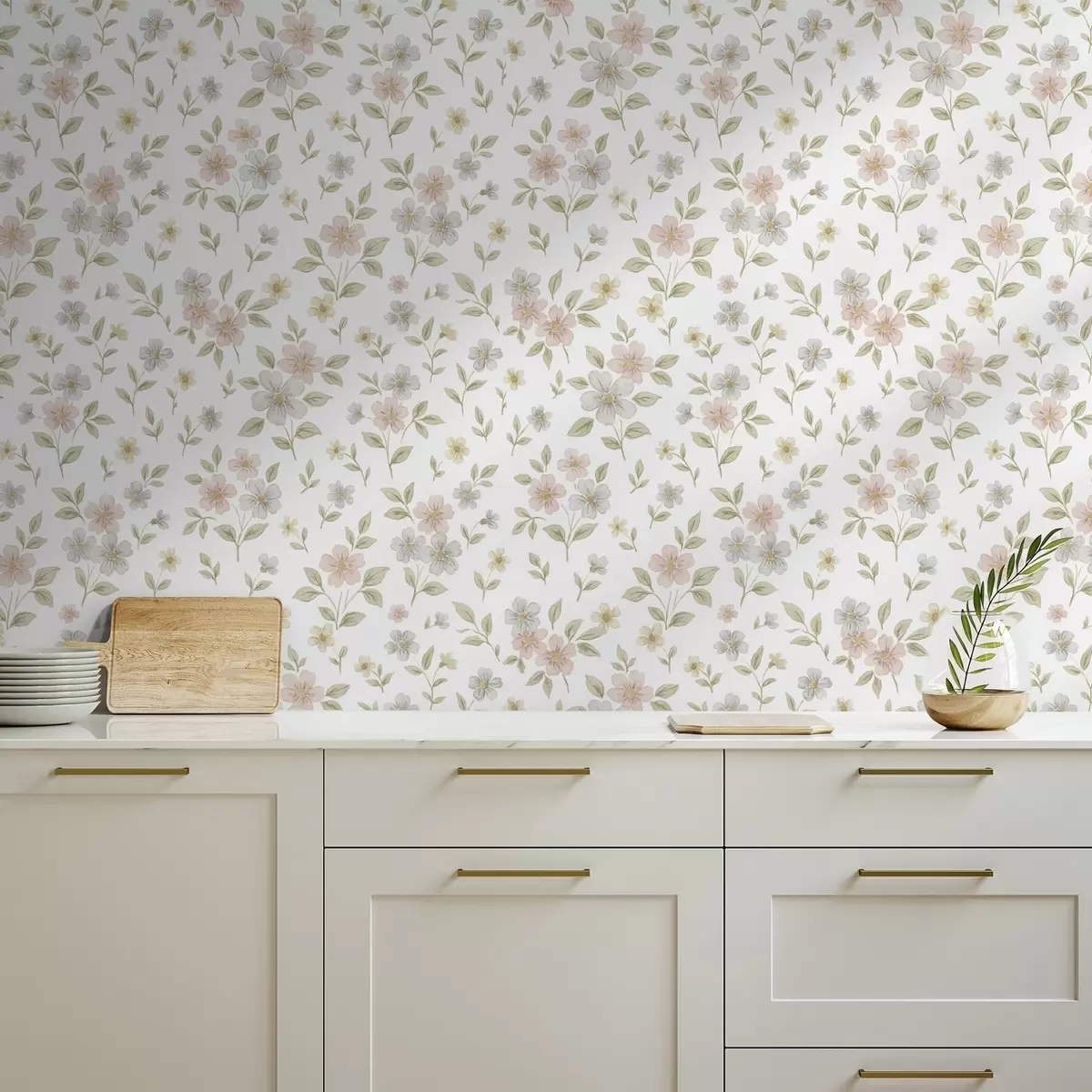Fonds d'écran Petites fleurs aquarellées aux couleurs pastel sur fond blanc Nr. a00596v1