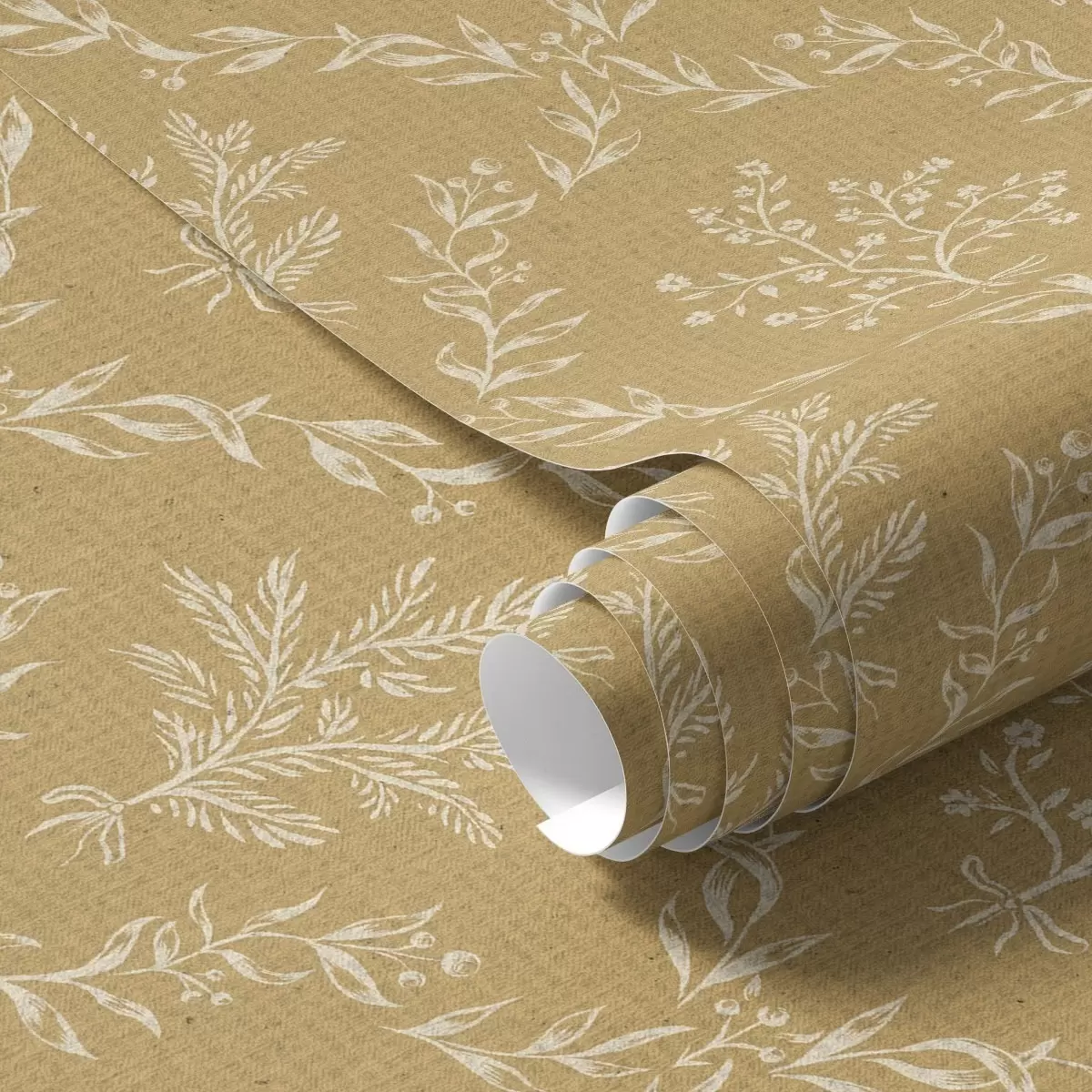 Fonds d'écran Couronnes blanches d'herbes et de fleurs sur fond moutarde Nr. a00599
