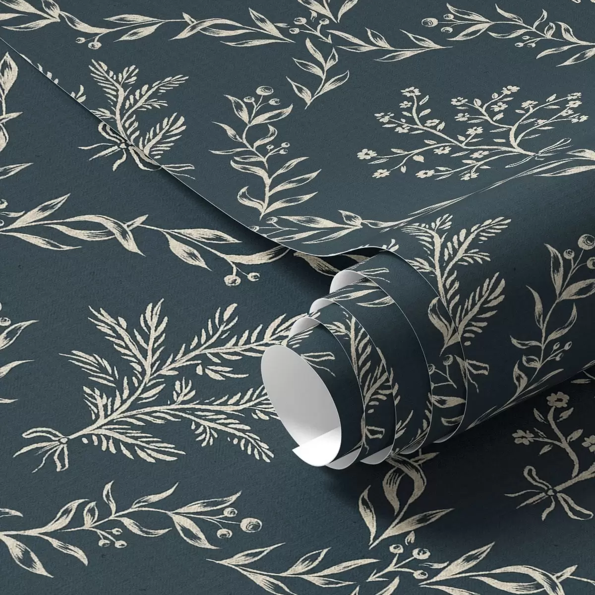 Fonds d'écran Couronnes blanches d'herbes et de fleurs sur fond bleu sarcelle foncé Nr. a00599v2