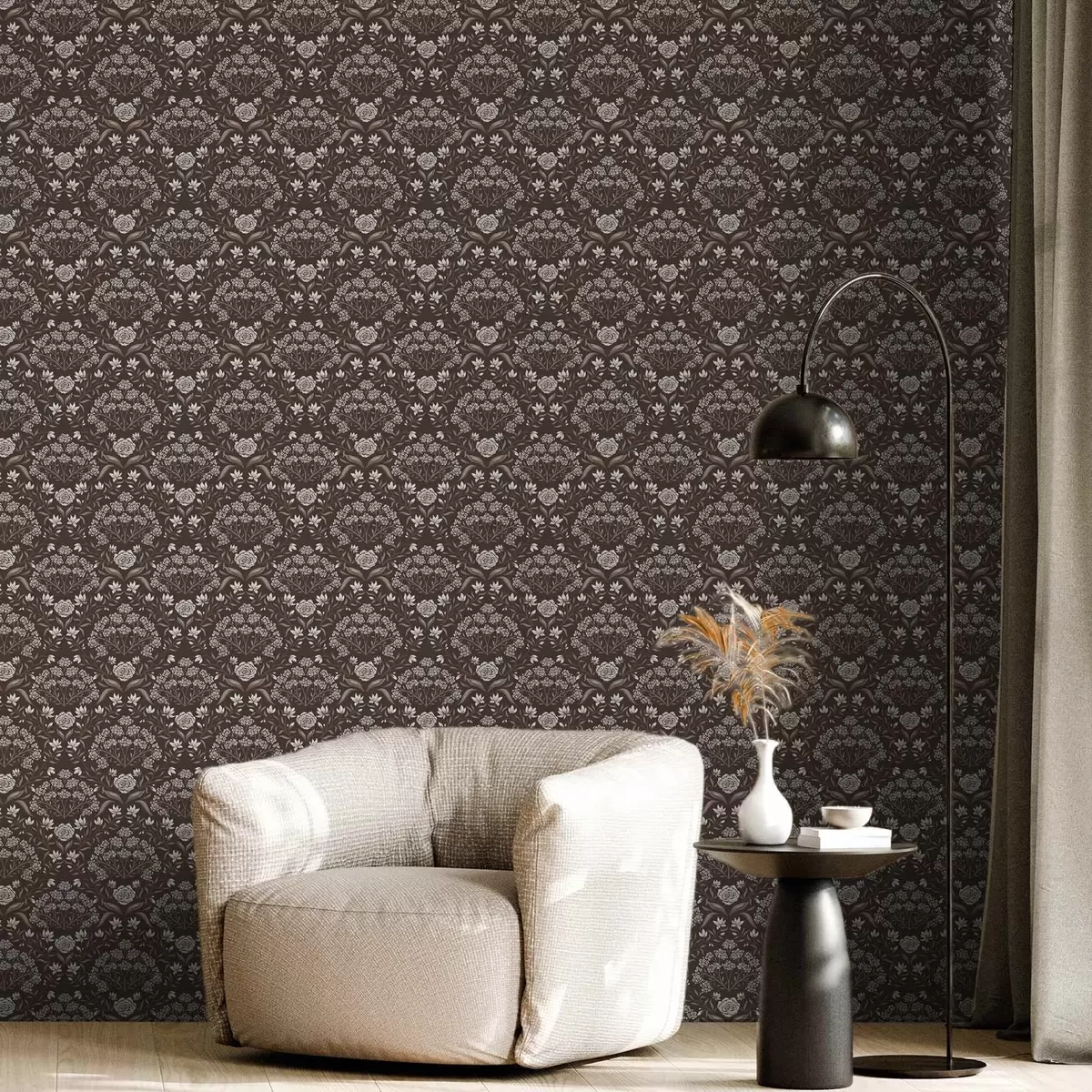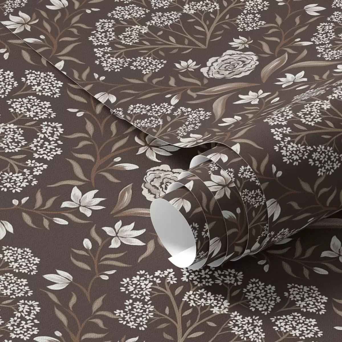 Fonds d'écran Damassé chocolat noir avec pivoines et perce-neige Nr. a00603v2