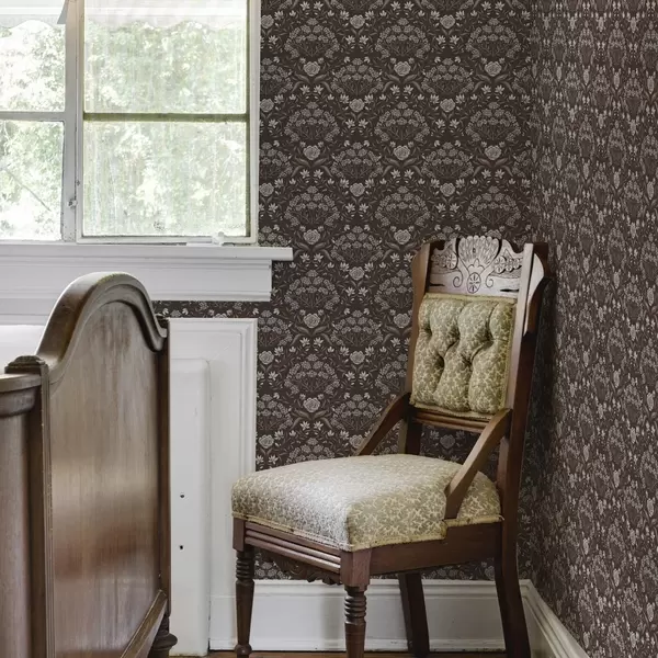Fonds d'écran Damassé chocolat noir avec pivoines et perce-neige Nr. a00603v2