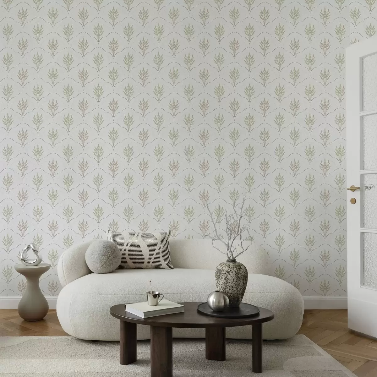 Fonds d'écran Blé dans un ornement en arc, pastels tendres sur fond blanc Nr. a00607v1