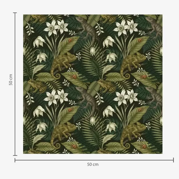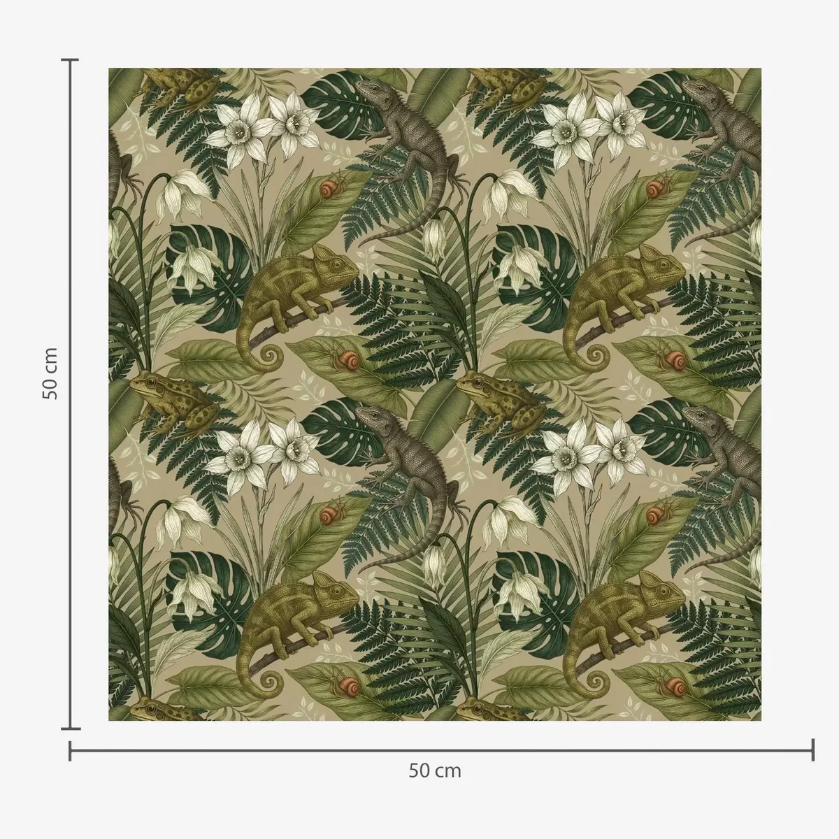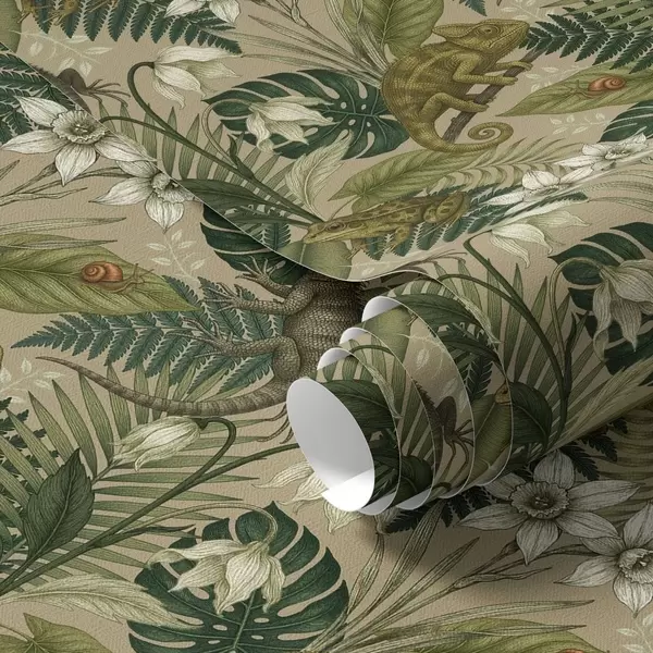 Fonds d'écran Caméléons et feuilles tropicales, fleurs blanches, fond beige Nr. a00608