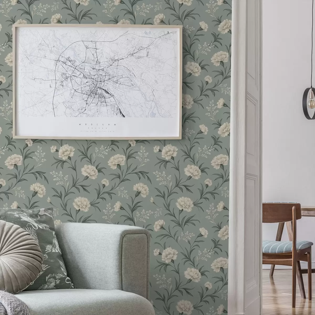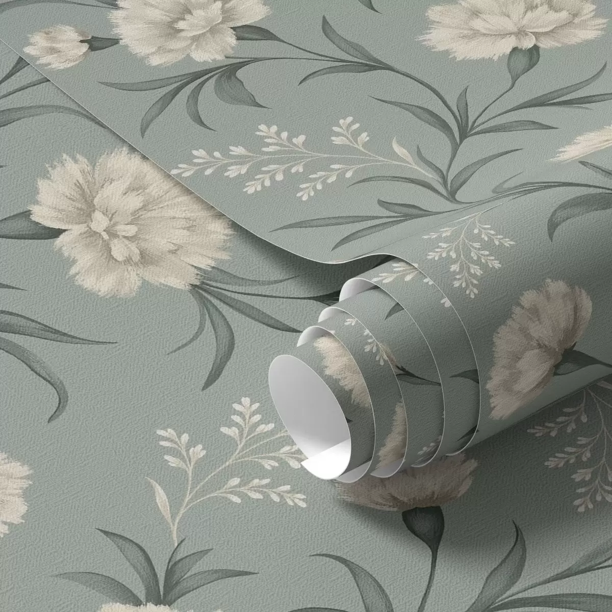 Fonds d'écran Des œillets poudrés sur fond gris-bleu sarcelle, imprimé raffiné Nr. a00610