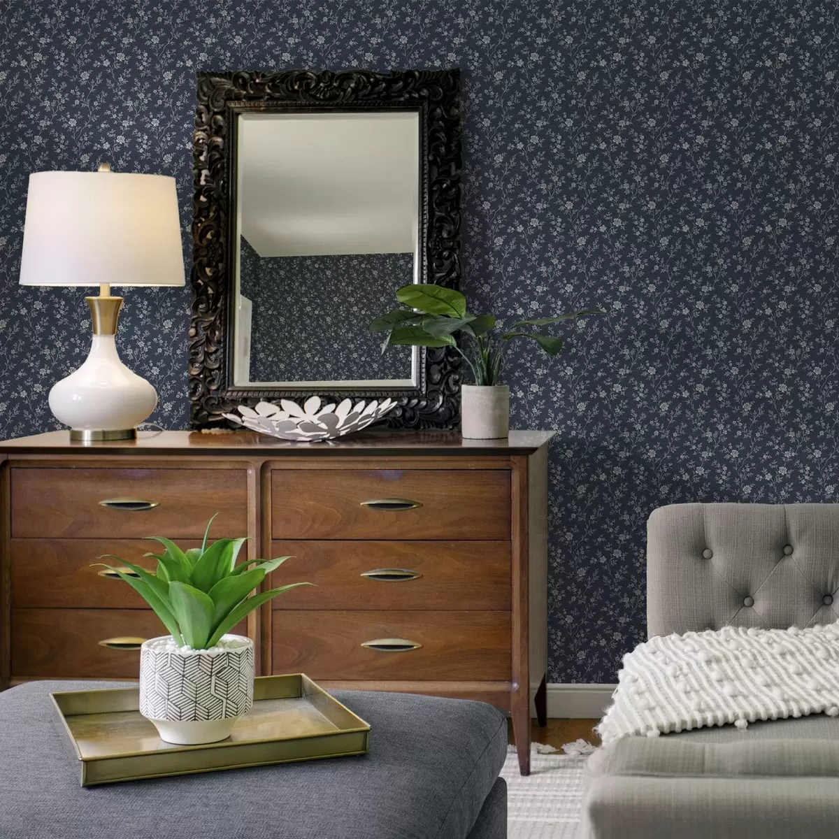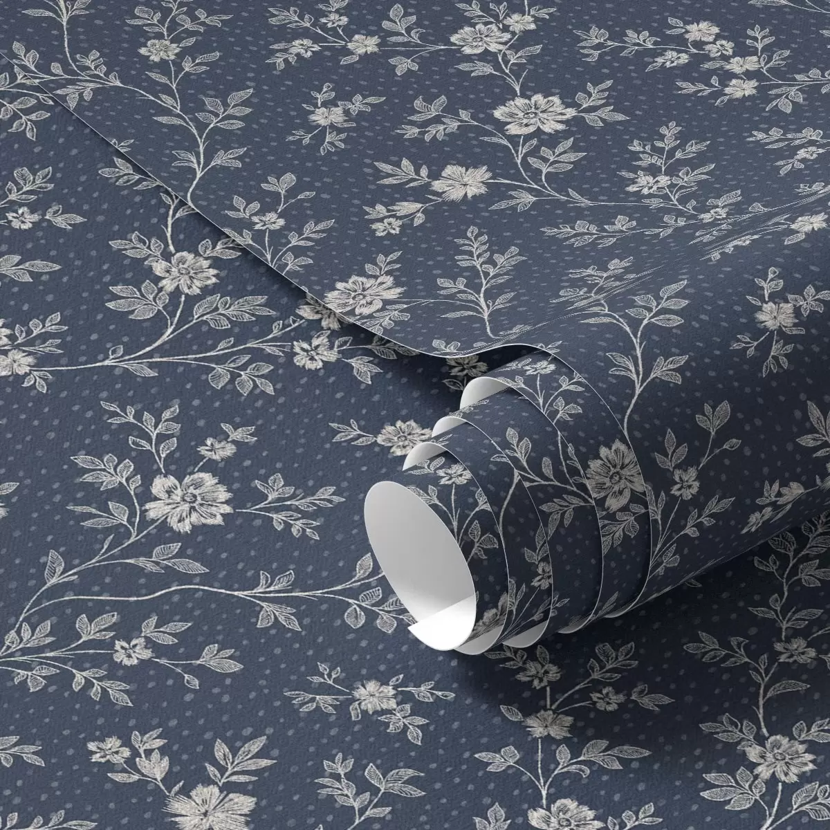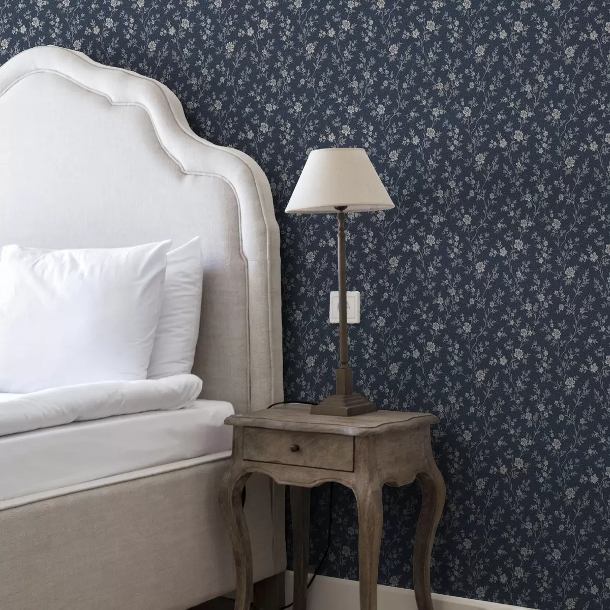Fonds d'écran Fond bleu marine foncé avec de fines branches et fleurs beiges Nr. a00612