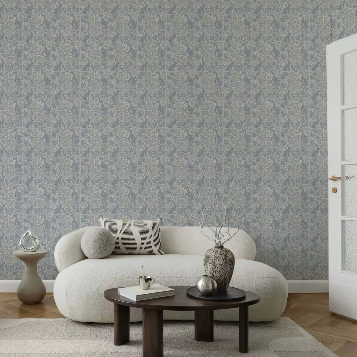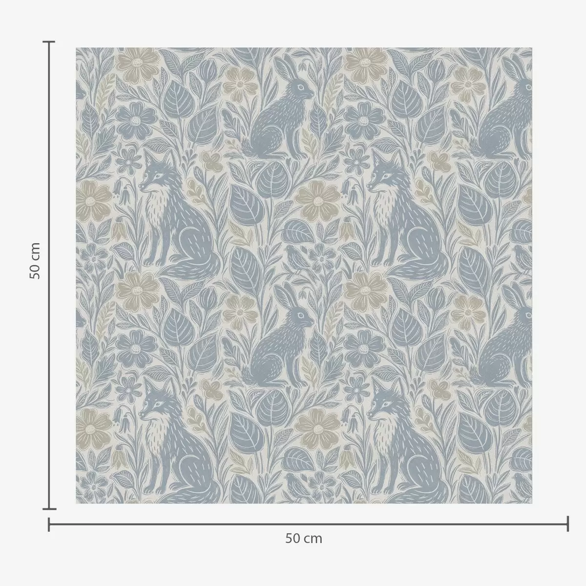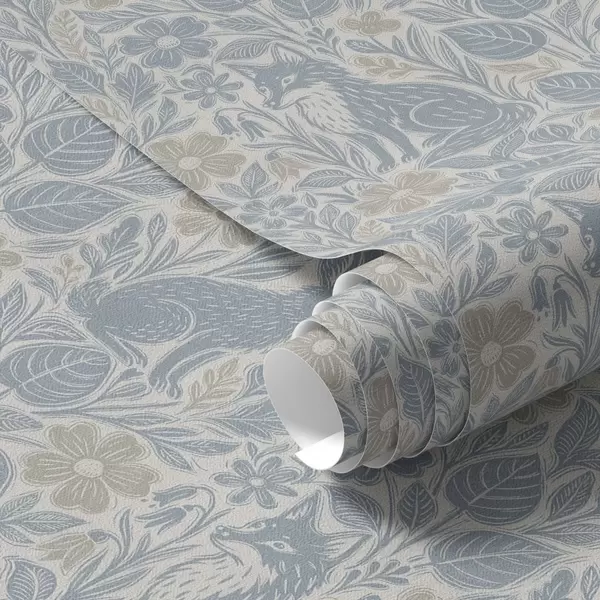 Fonds d'écran Animaux et fleurs de la forêt : renard et lièvre dans des tons bleus Nr. a00613