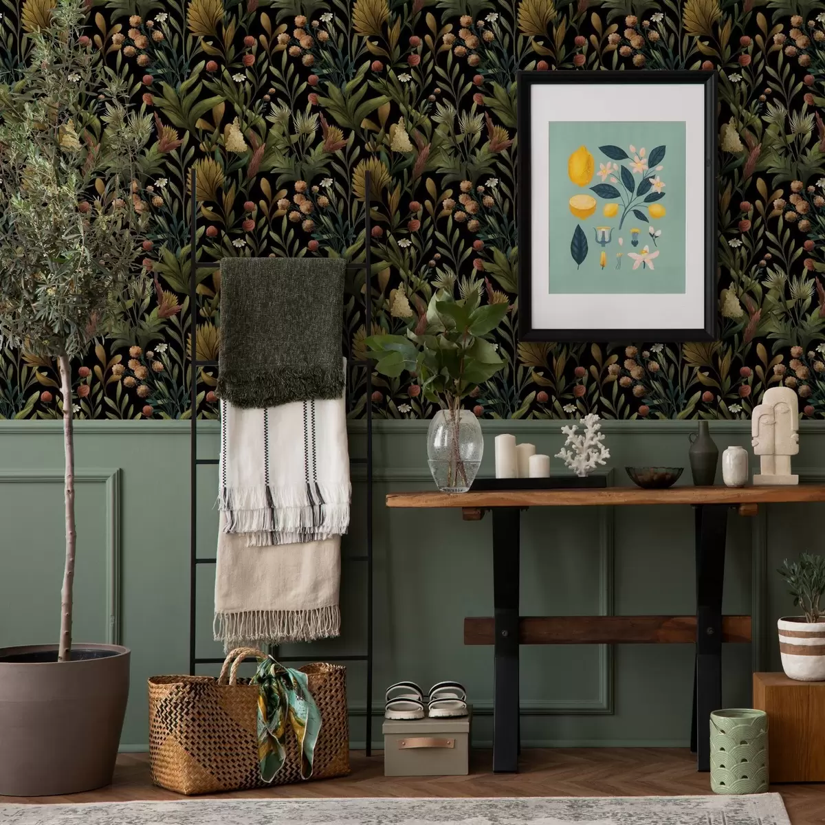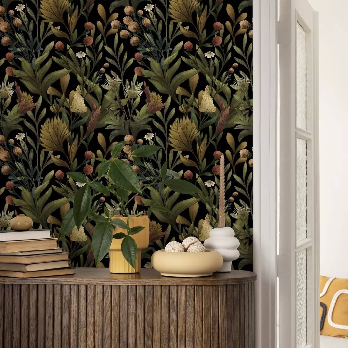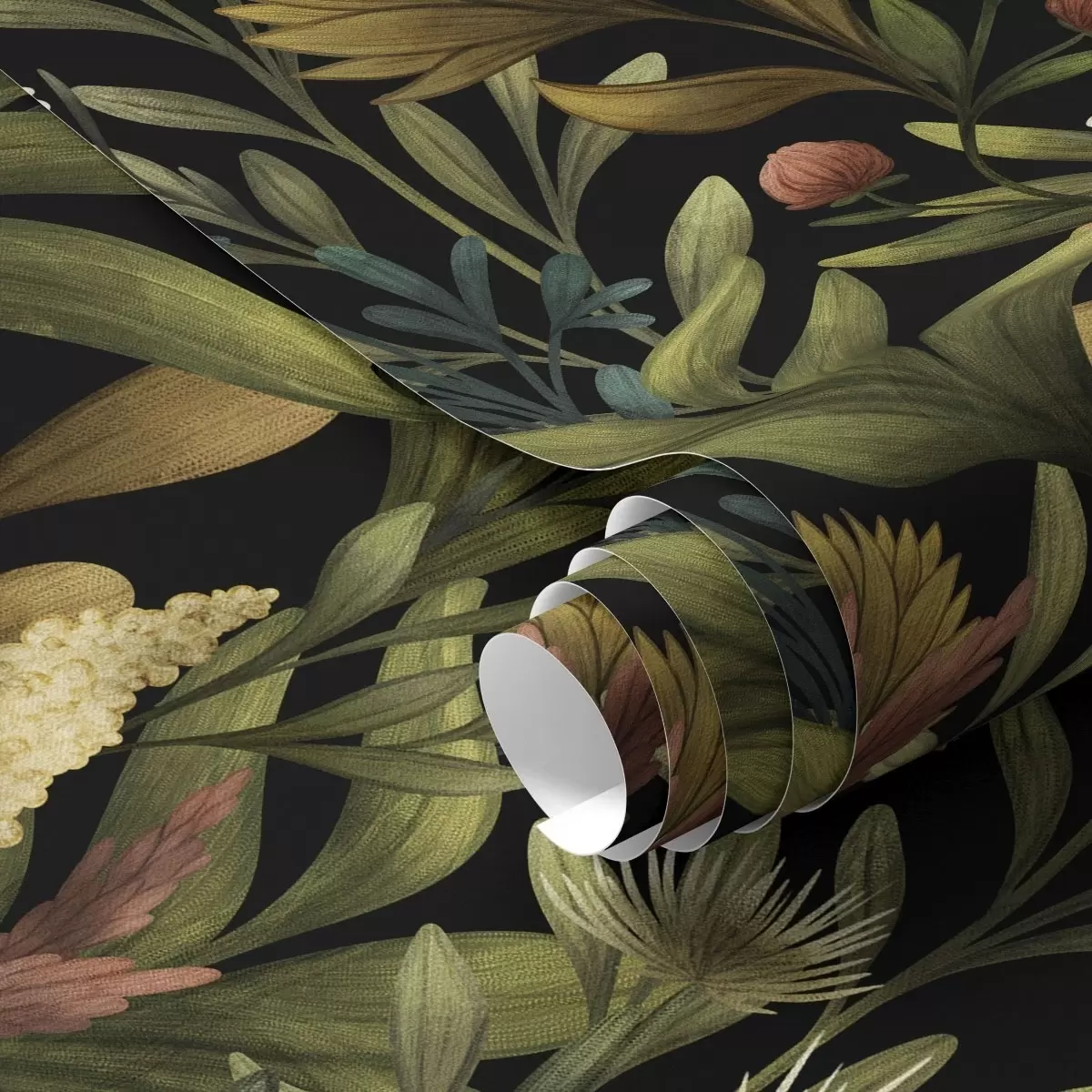 Fonds d'écran Jardin botanique sur fond noir, palette automnale chaleureuse Nr. a00619