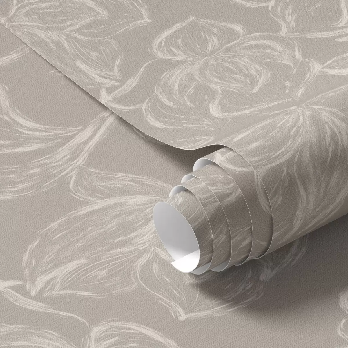 Fonds d'écran Fleurs aux contours crème sur fond taupe chaud Nr. a00625v2