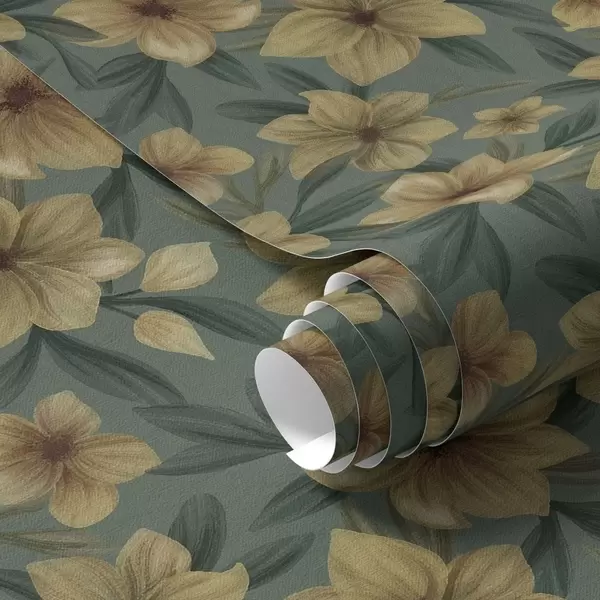 Fonds d'écran Fleurs ocres sur fond vert foncé, motif dense Nr. a00628