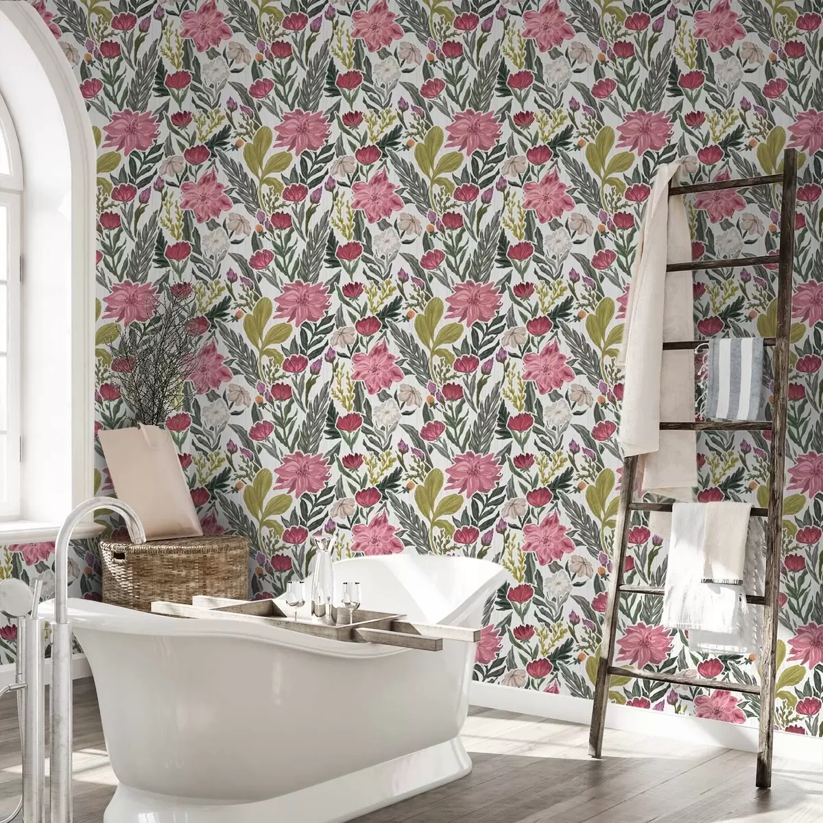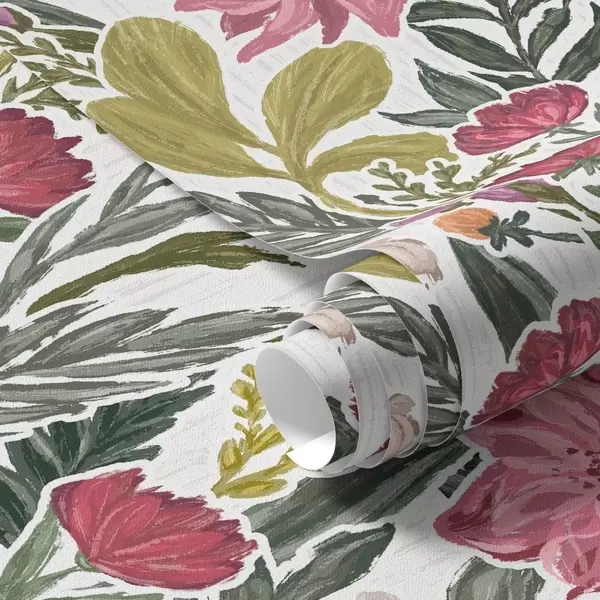 Fonds d'écran Fleurs luxuriantes roses et crème sur fond blanc, texture impasto Nr. a00629v1