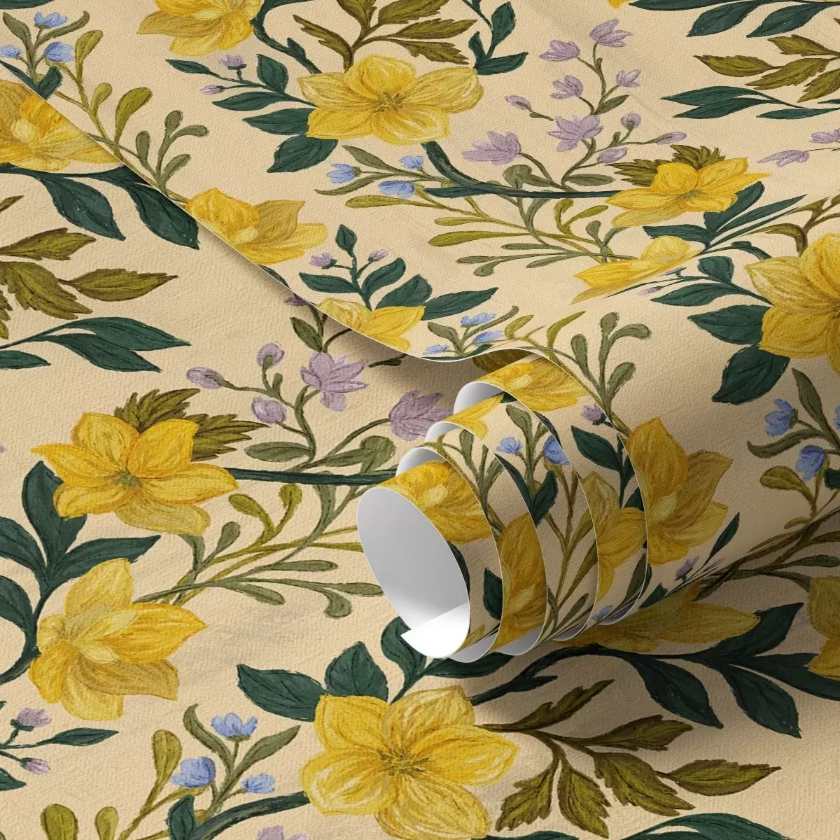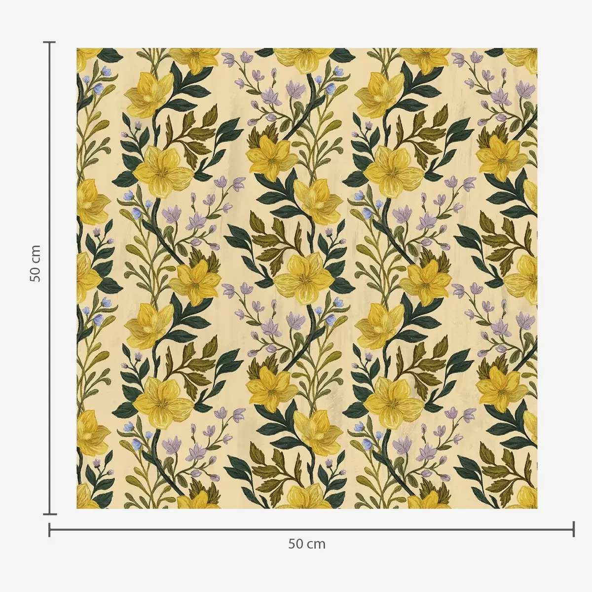 Fonds d'écran Fleurs jaunes disposées en guirlandes verticales sur fond crème Nr. a00632