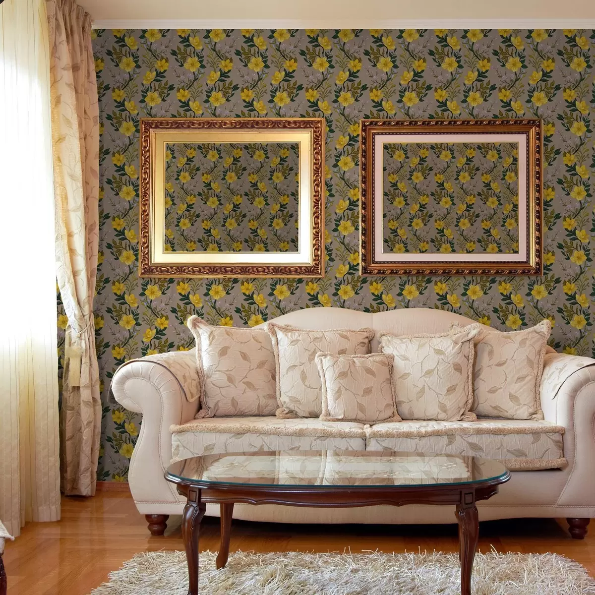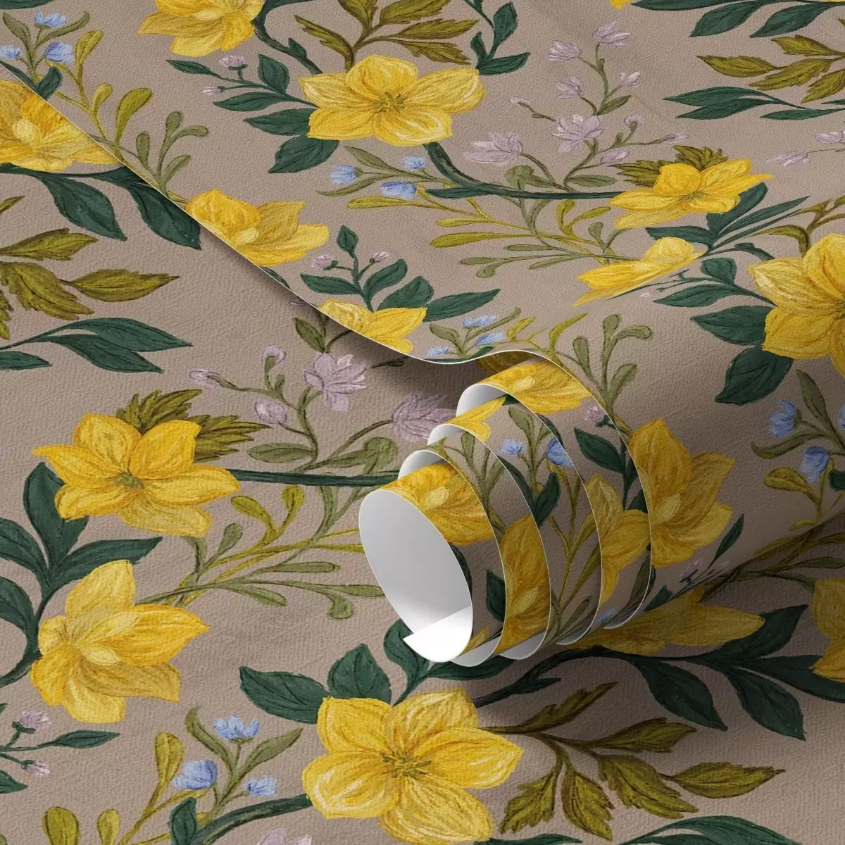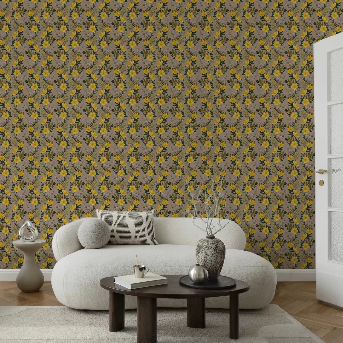 Fonds d'écran Fleurs jaunes en guirlandes verticales sur fond taupe Nr. a00632v1