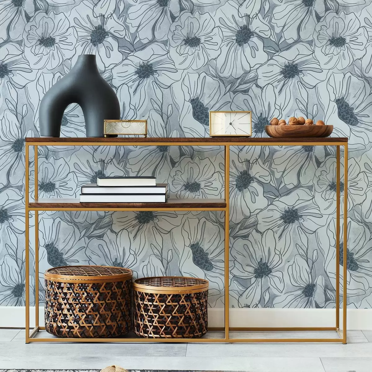 Fonds d'écran Fleurs linéaires dans une palette gris-bleu froide Nr. a00636v2
