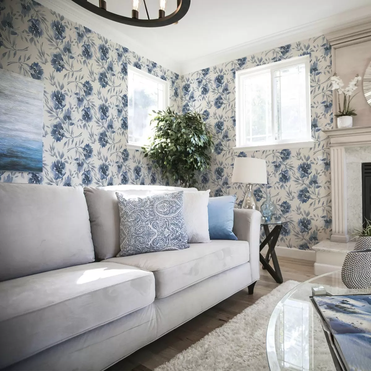 Fonds d'écran Peonies indigo à l'aquarelle sur fond blanc Nr. a00641