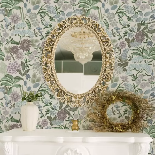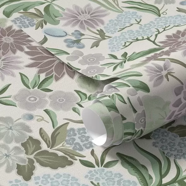 Fonds d'écran Fleurs et feuillages pastel dans une palette bleu menthe Nr. a00642