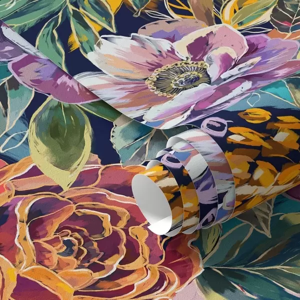 Fonds d'écran De grandes fleurs peintes au pinceau sur un fond bleu foncé Nr. a00643